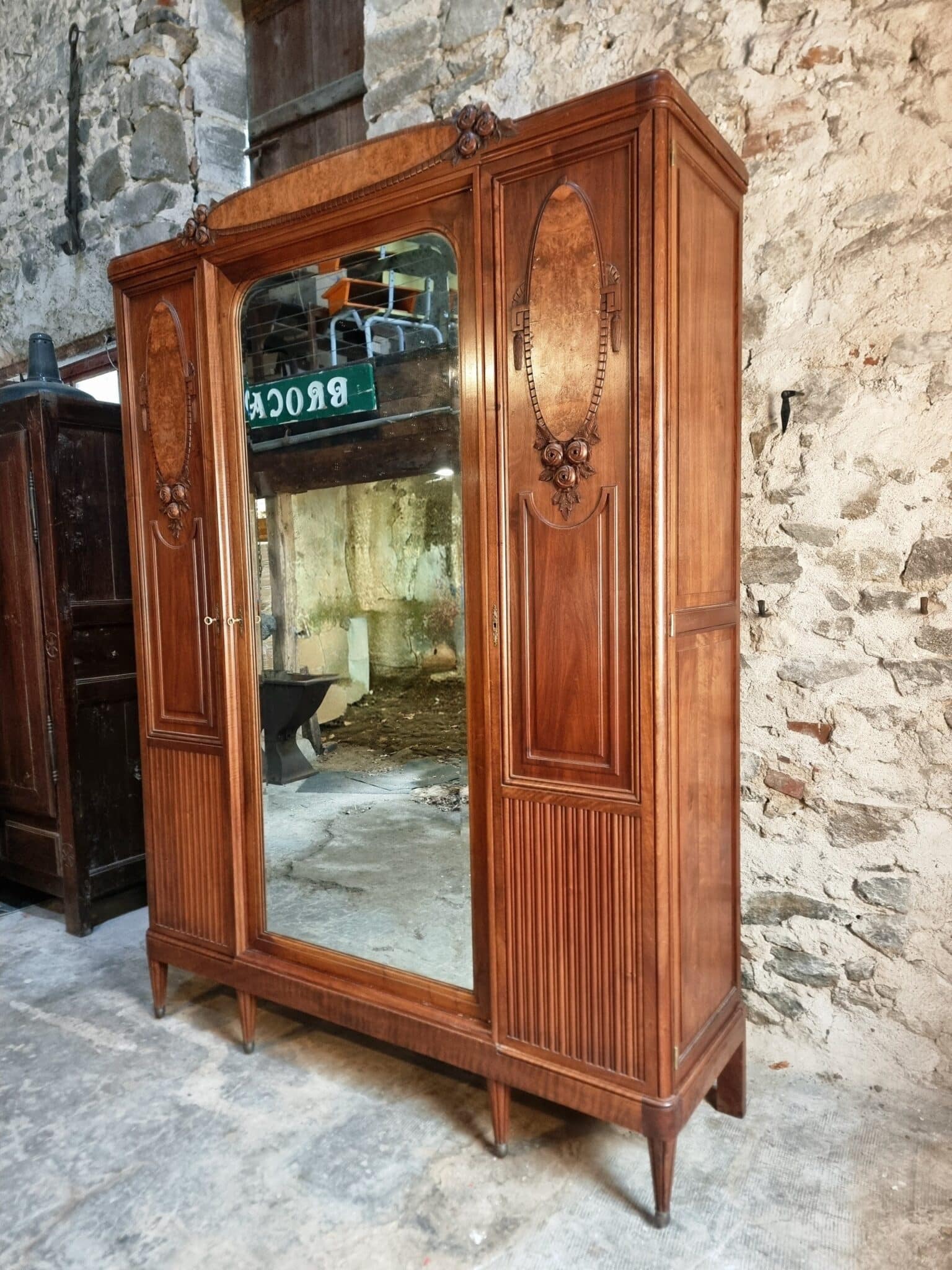 Antique Art Nouveau Wardrobe with Mirror – Early 20th Century