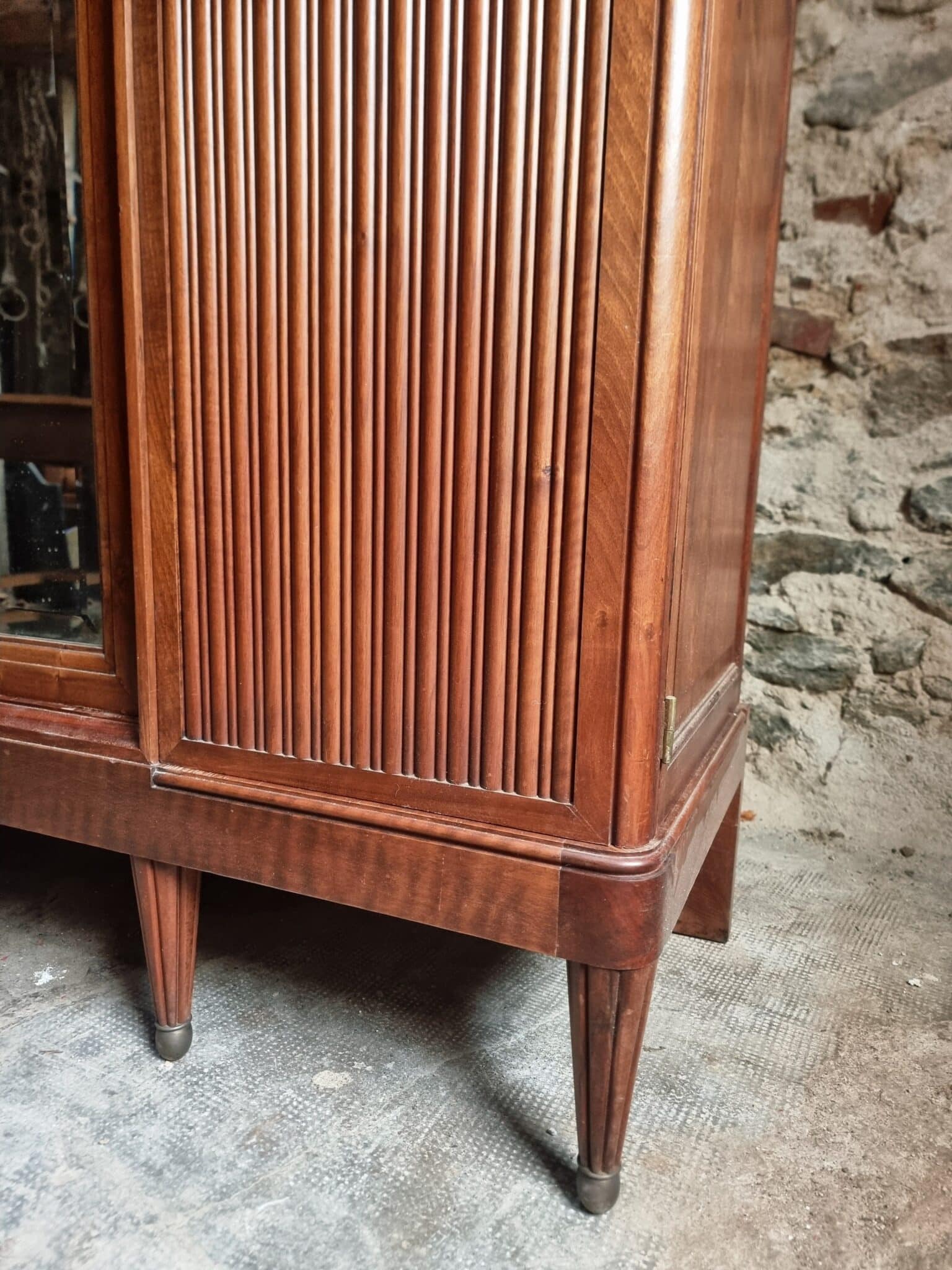 Subtle carved elements and fluted details enhance its characteristic period aesthetic, typical of early 20th century French furniture.