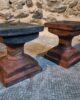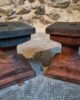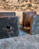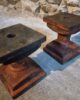 Each base has a square top with a central mounting hole, making them not only decorative but also ideal for repurposing. They can be transformed into unique candlesticks, display stands, sculptural decor, or bookends, adding character to any industrial or rustic interior.