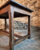 The table features an oak base and legs with a walnut top, displaying traditional joinery and a naturally aged surface.