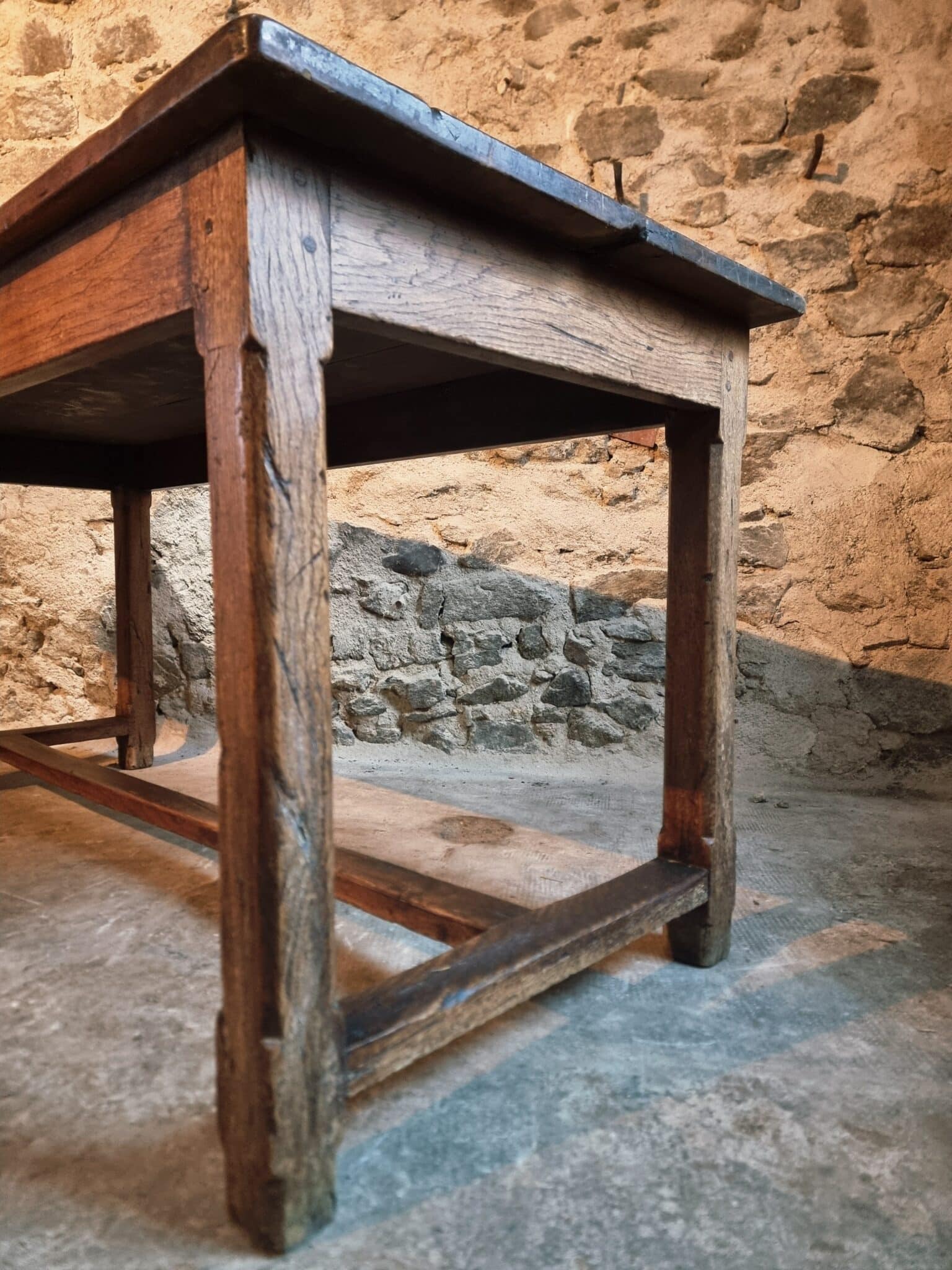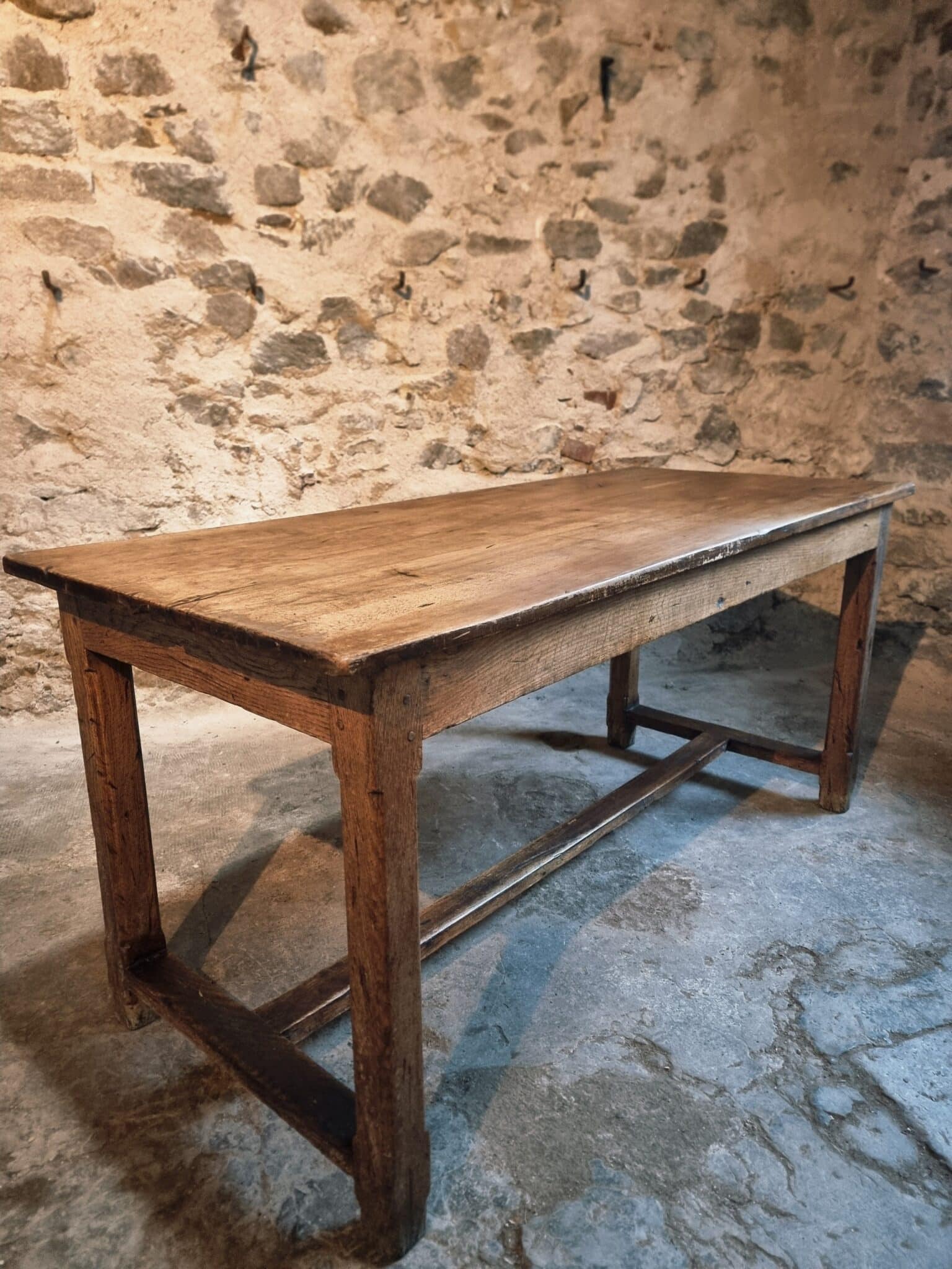 The structure is stable, and the table remains in good overall condition with wear consistent with age and use. The design reflects typical French rural craftsmanship of the 18th century.
