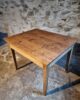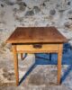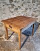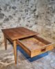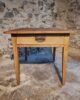 Originally used as a kitchen or work table, it has clean, simple lines, tapered legs, and a large single drawer with its original iron handle, typical of French provincial craftsmanship.
