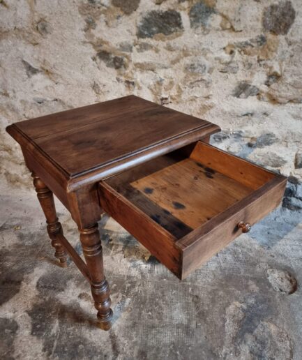 Originally, the table was fitted with either one large pull-out drawer or two smaller drawers. These drawers are no longer present. The openings have been neatly finished with solid oak furniture panels, maintaining a clean and balanced appearance.