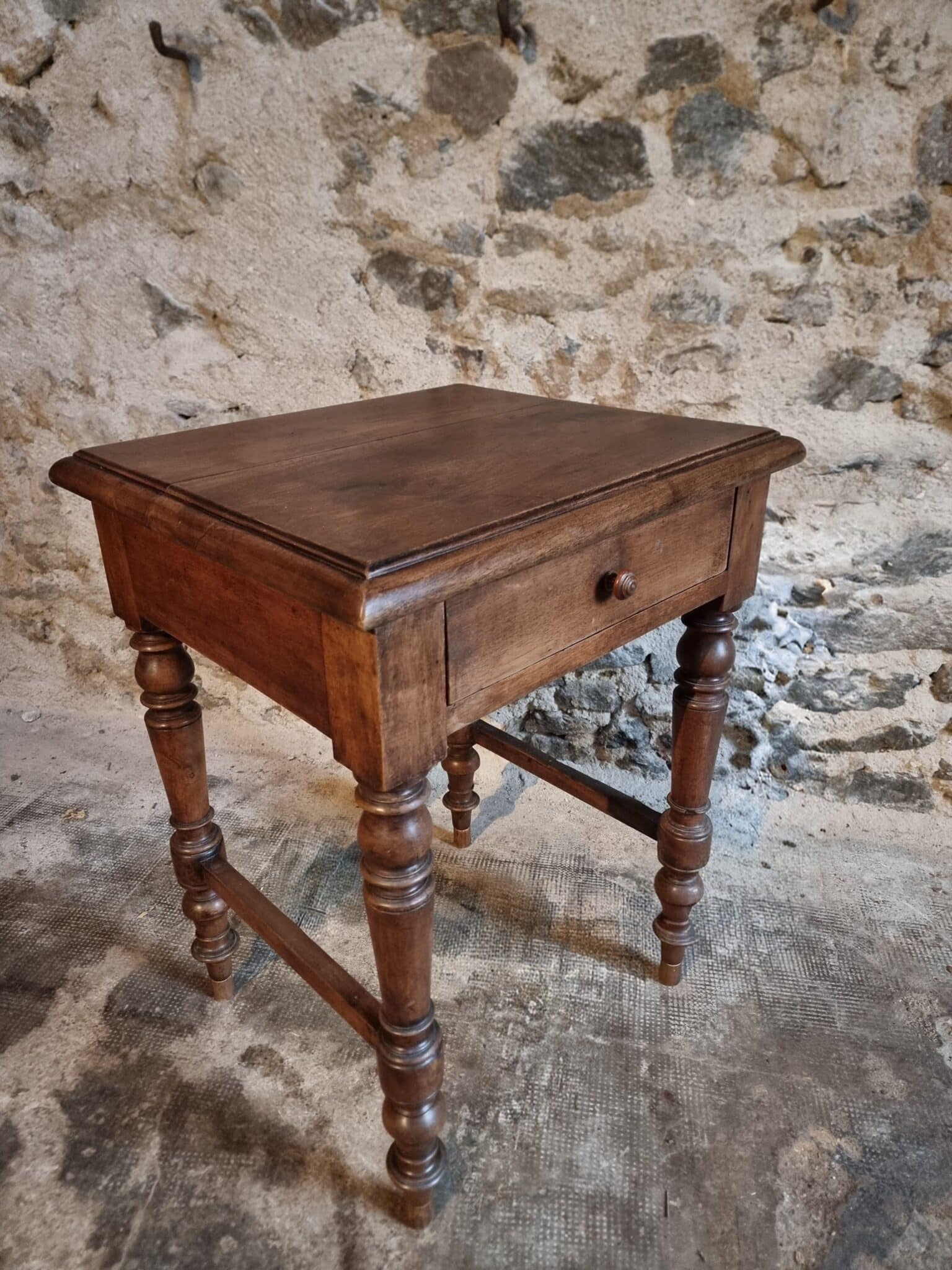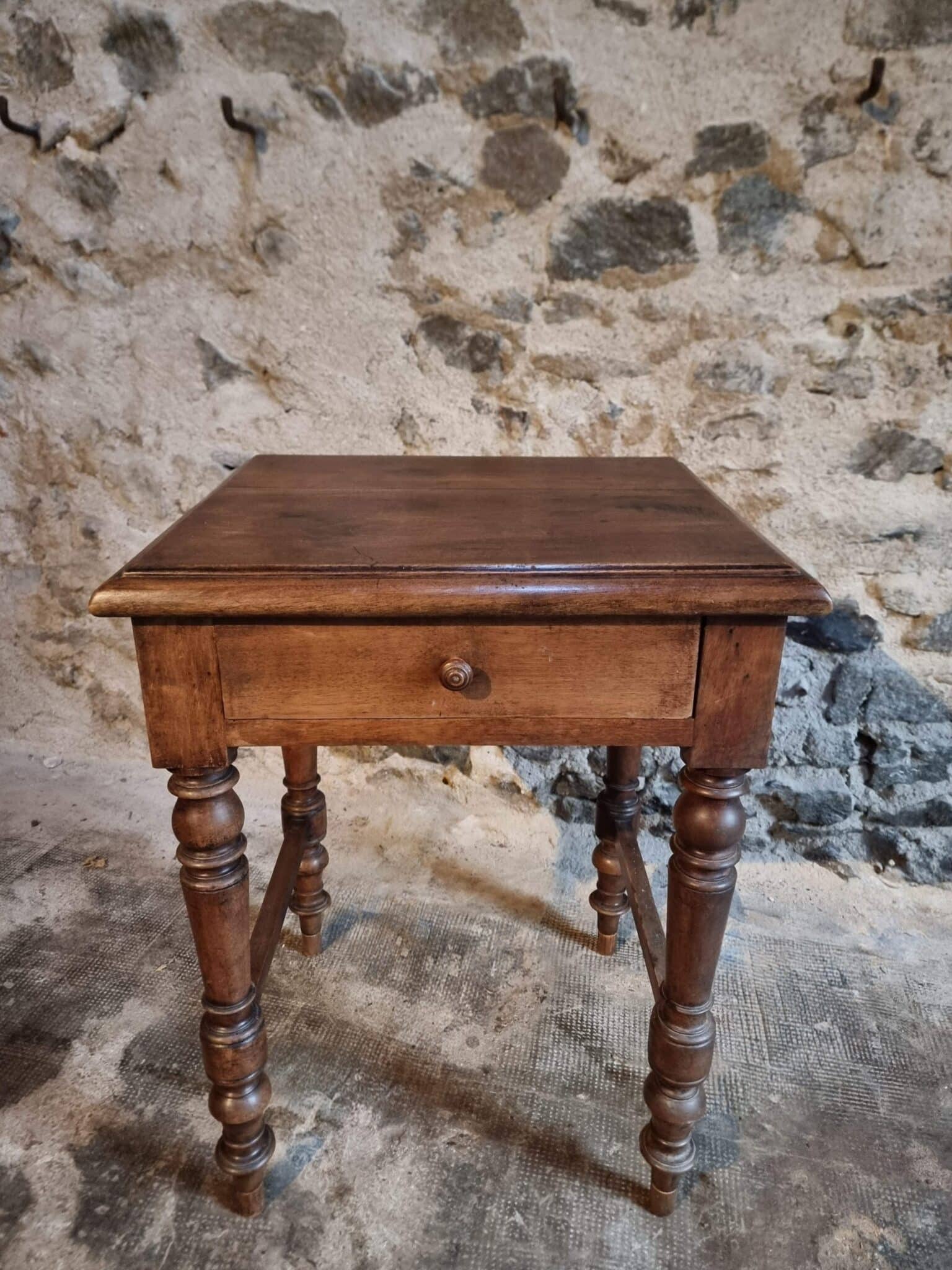 Antique French Walnut Side Table – 19th Century Louis Philippe Style Solid Walnut Table with Drawer (1870–1900)