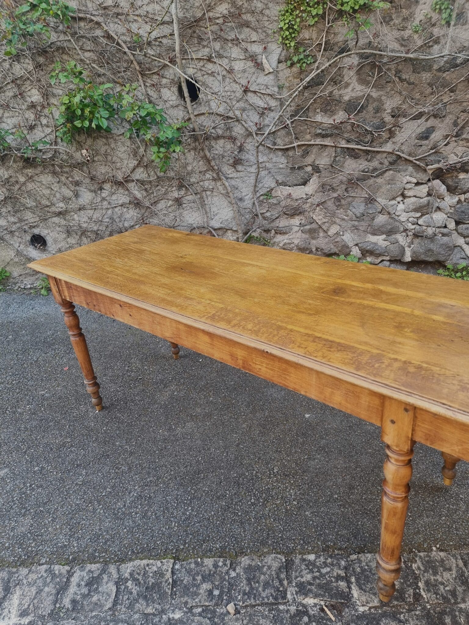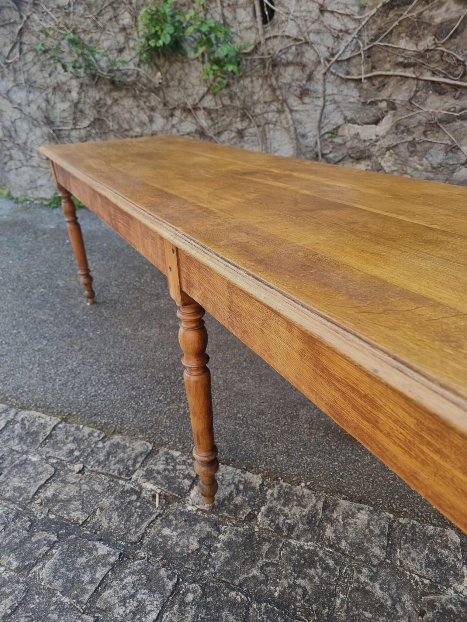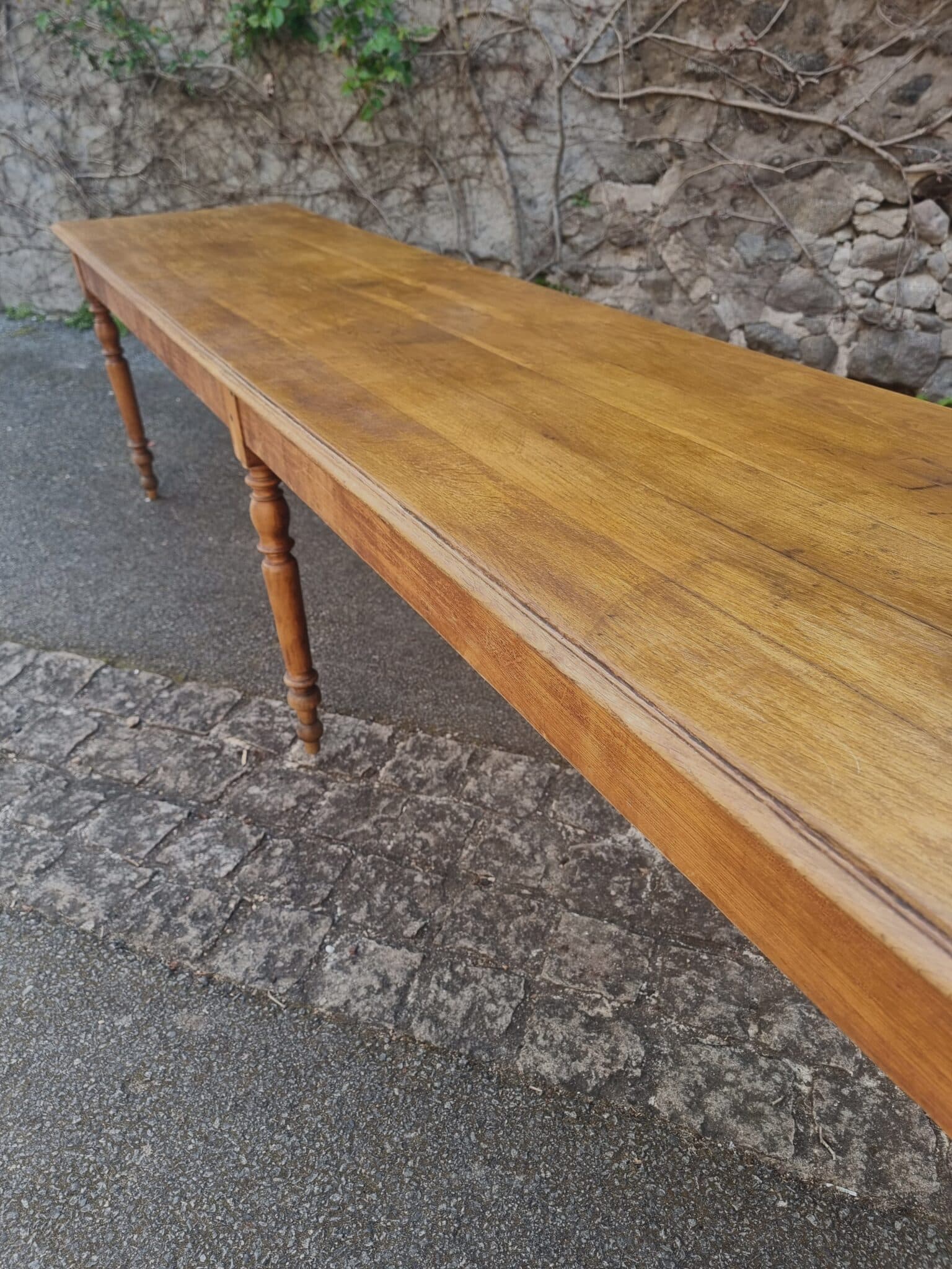 This impressive antique French dining table dates from the late 19th to early 20th century (circa 1880–1900). With its generous proportions and solid construction, it is a perfect example of a traditional French refectory or farmhouse table.