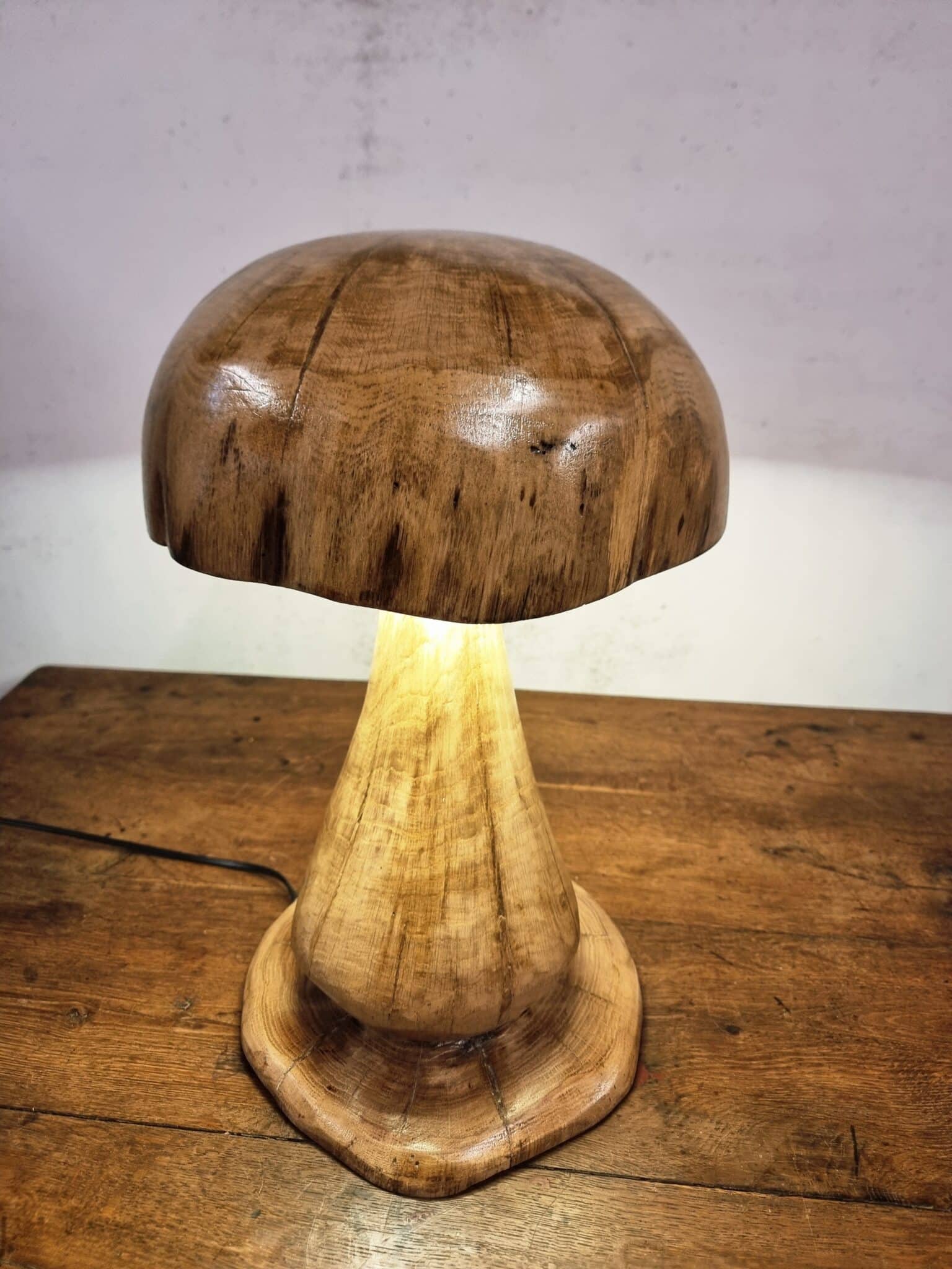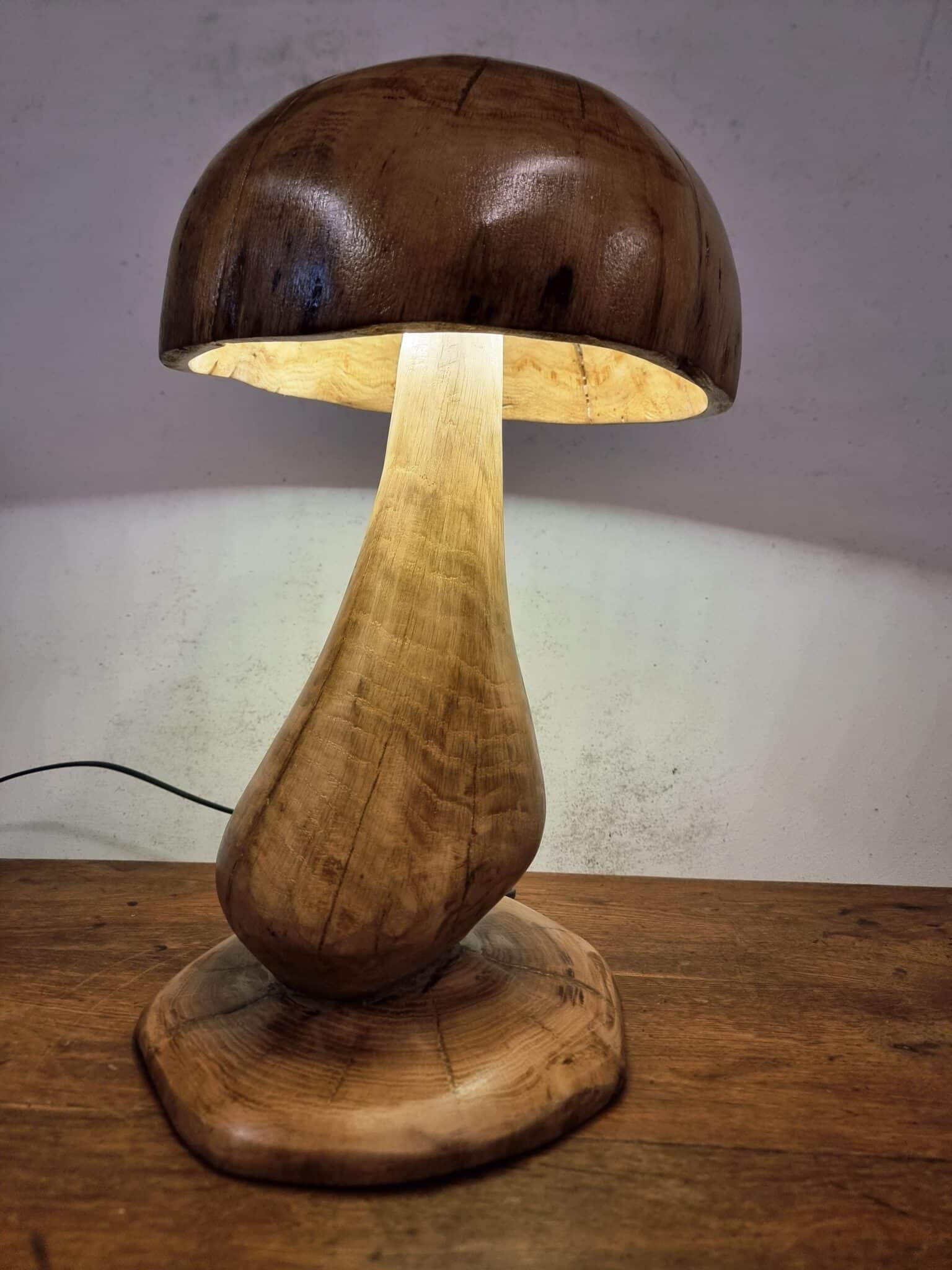 Handcrafted Mushroom-Shaped Oak Table Lamp
