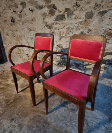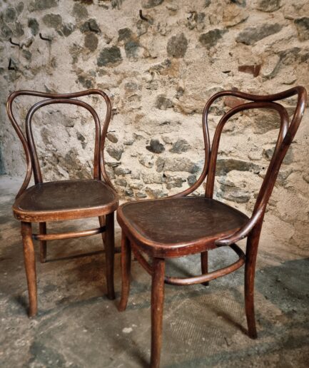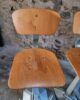 Good vintage condition. The chairs show signs of use consistent with age, including light wear to the wood and metal surfaces. Structurally sound and ready for use.
