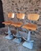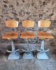 Set of 3 Industrial Swivel Workshop Chairs – Fixed Height Bar Stools – Mid Century Factory Seating