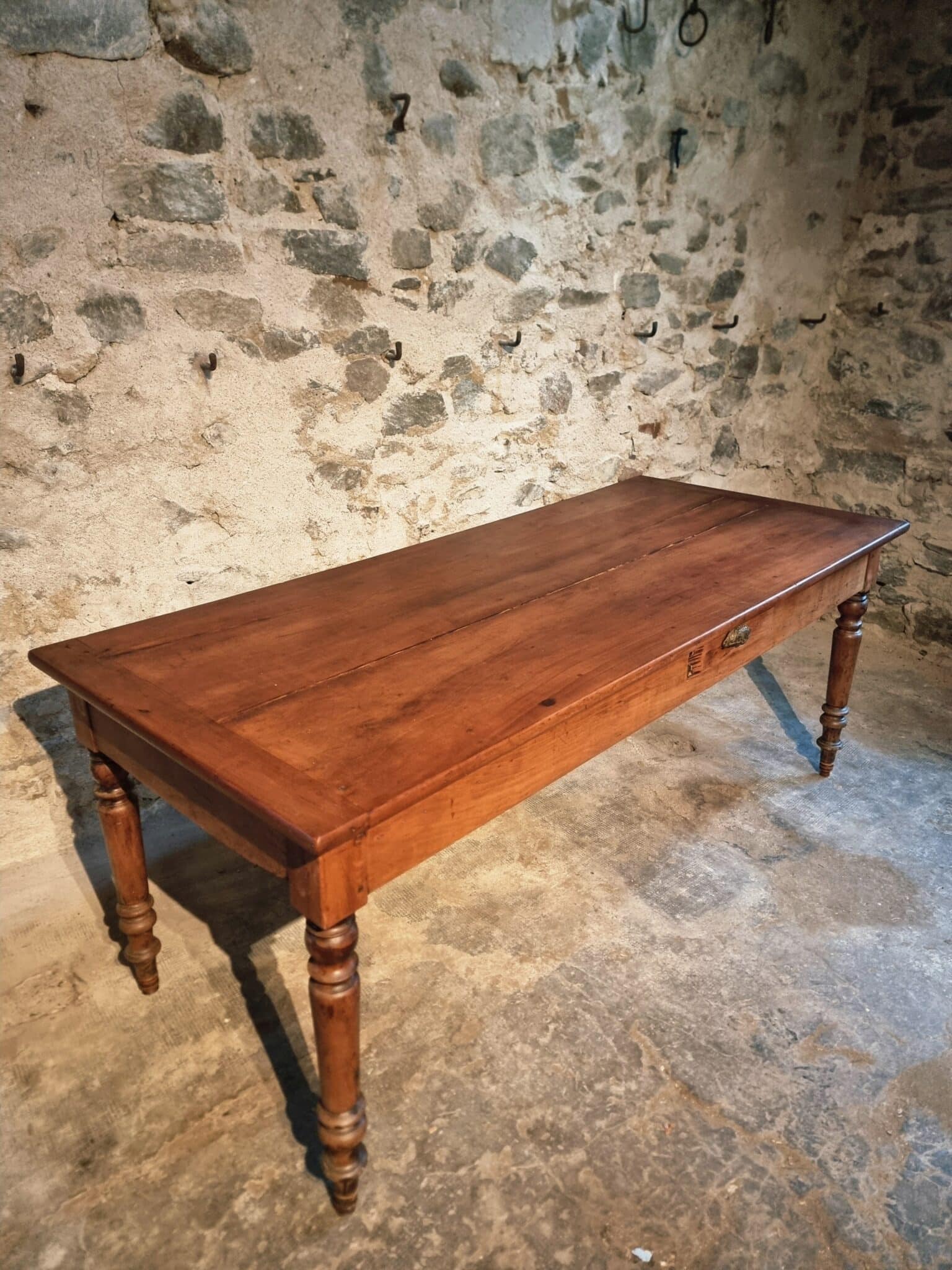 With its rich cherry tone and time-worn surface, this table carries the charm of centuries of use, making it a stunning centerpiece for both rustic and modern interiors.