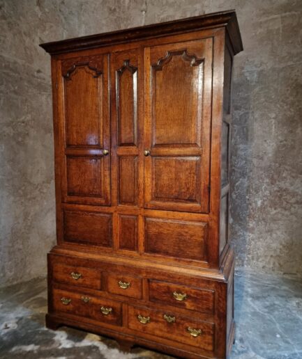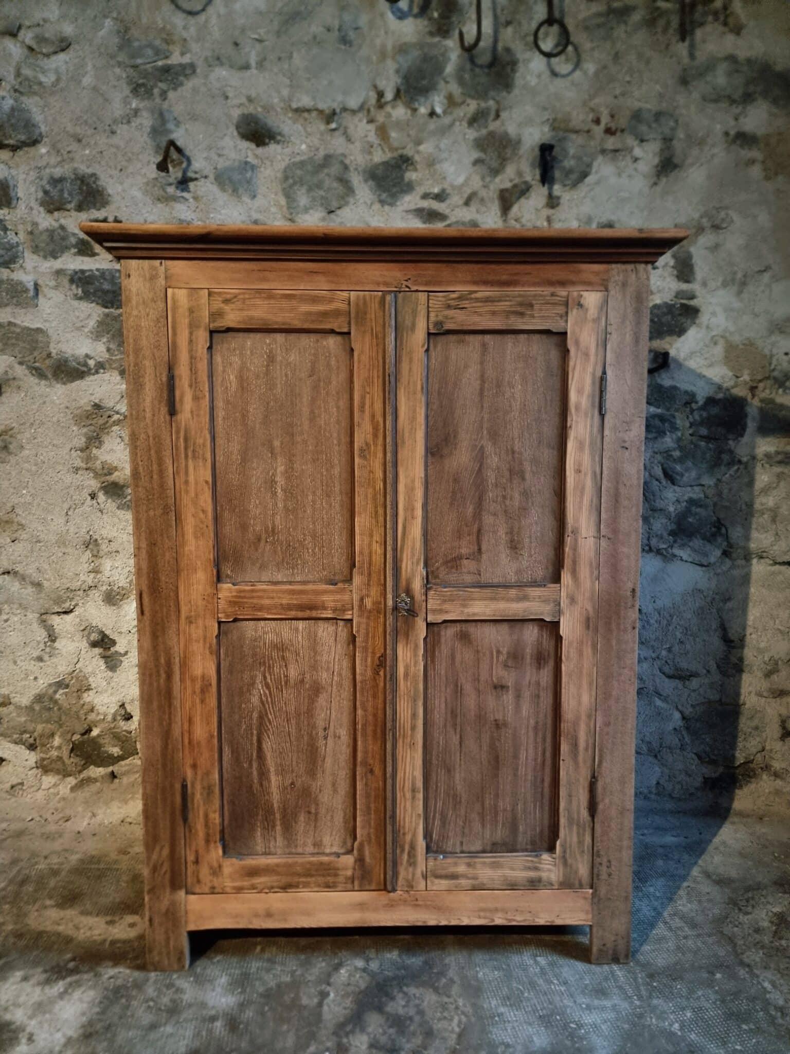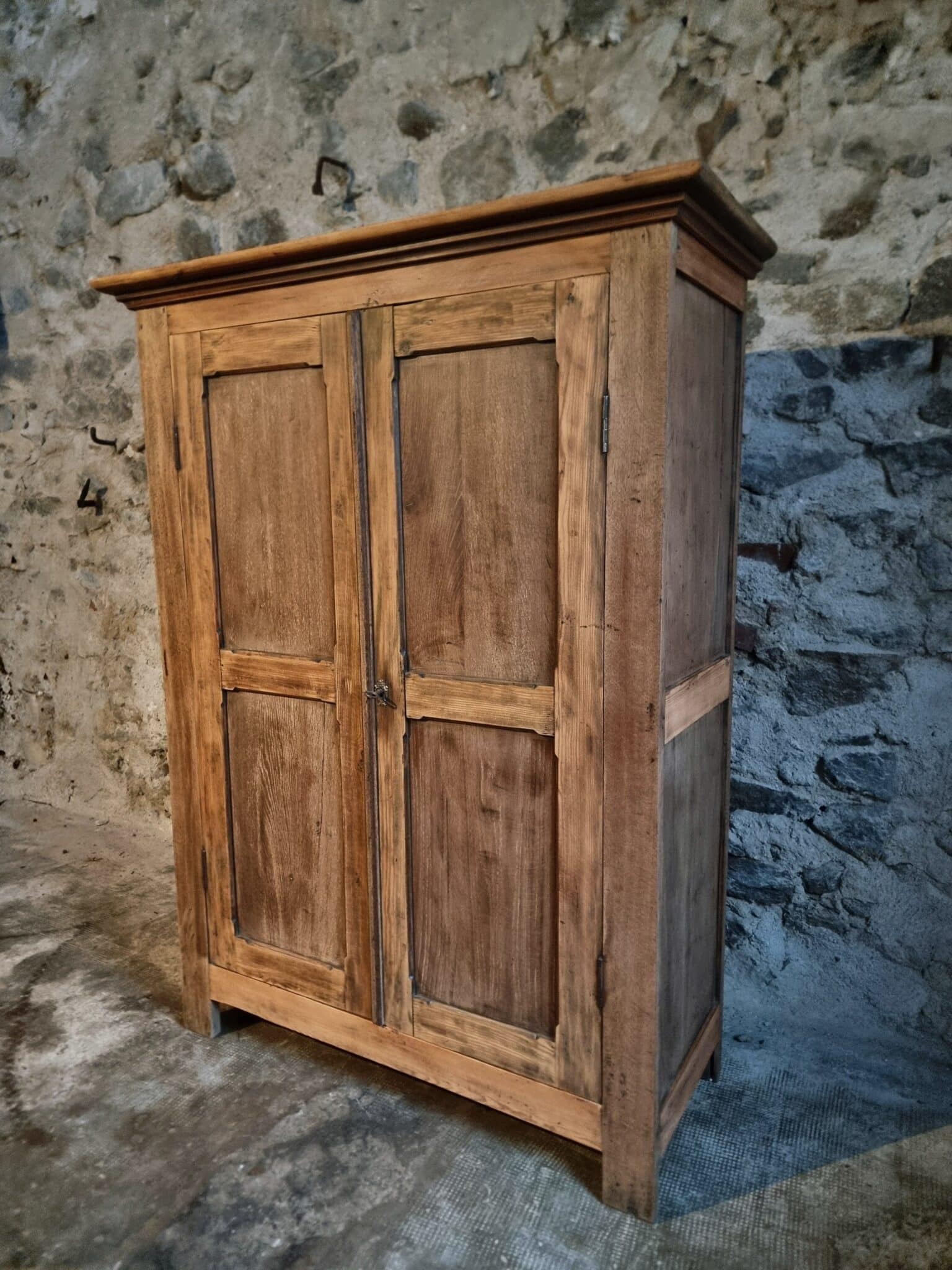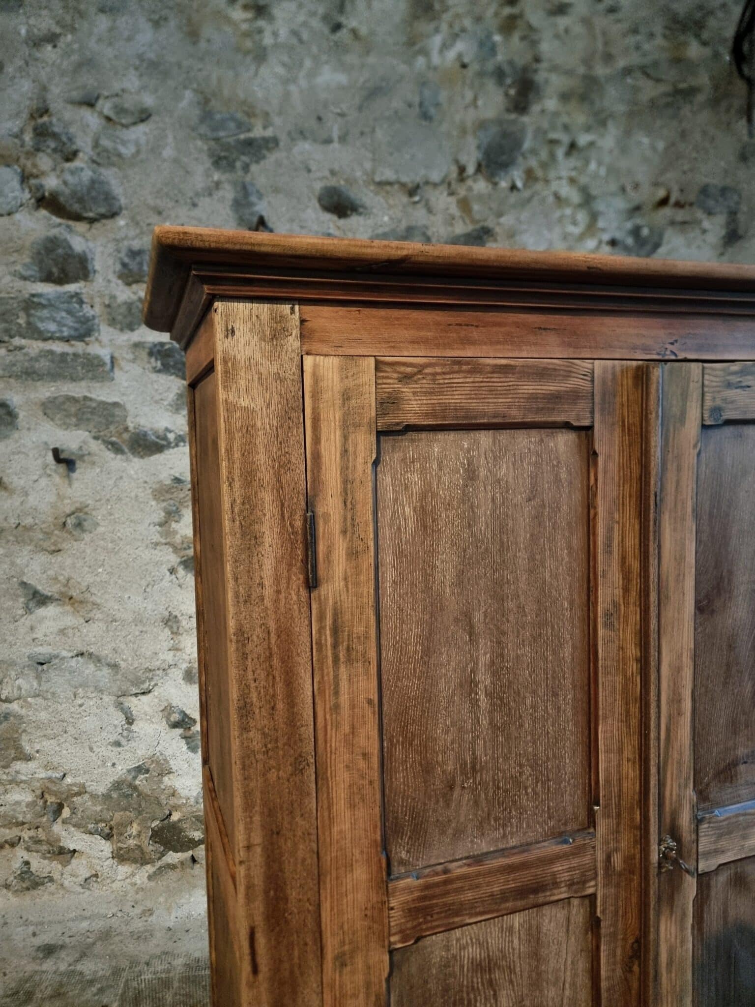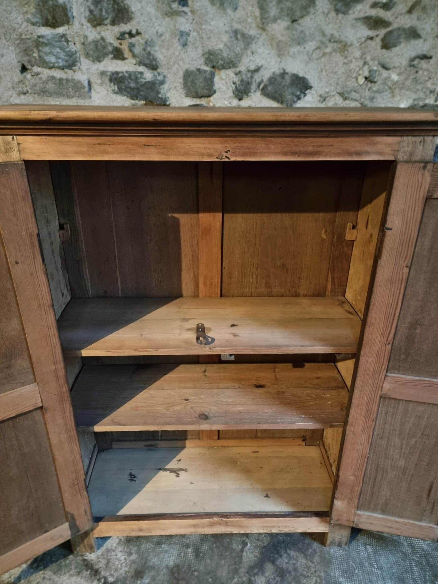 This cabinet would have originally served as a linen cupboard, pantry cabinet, or general storage furniture in a French rural home.