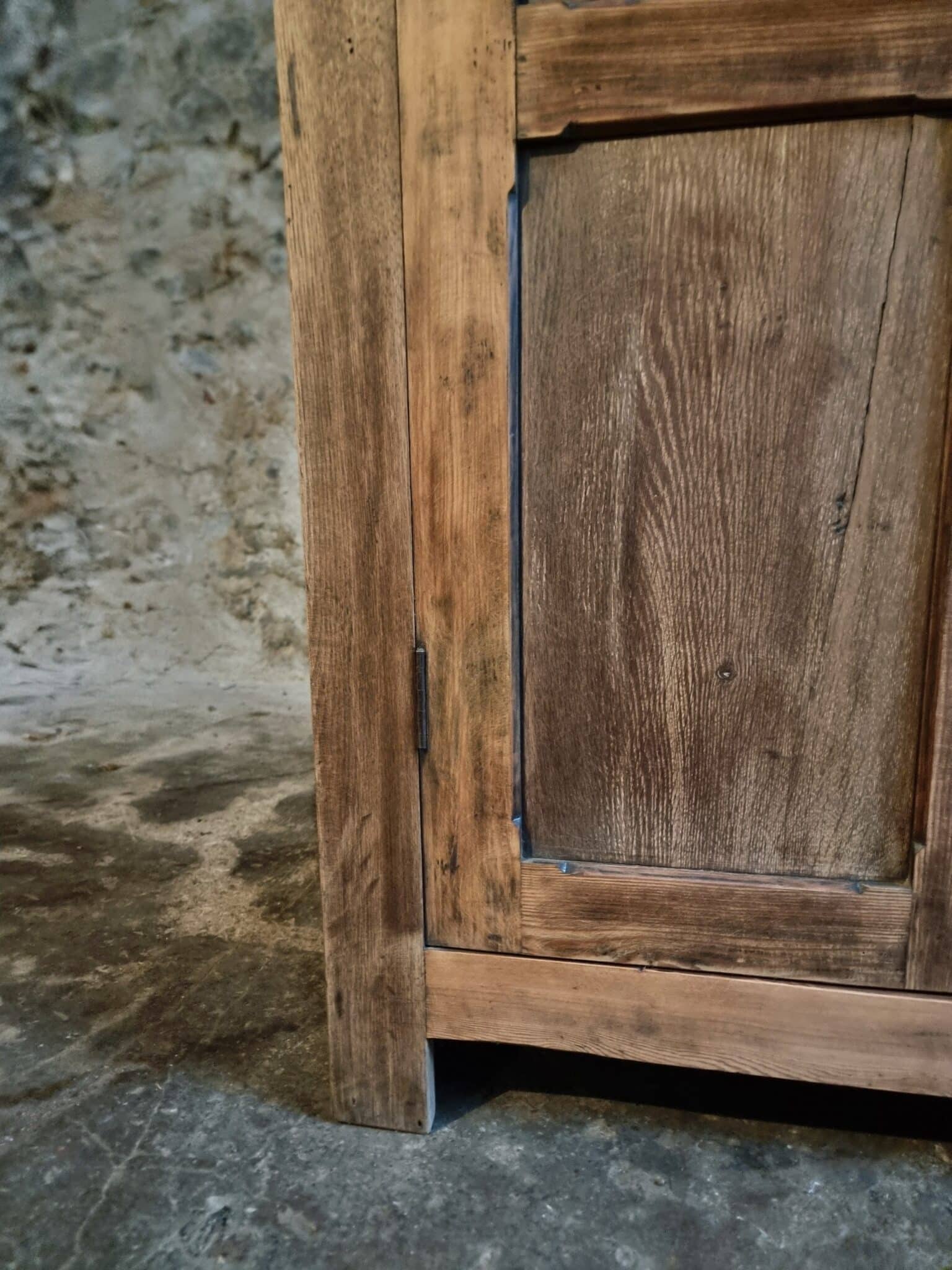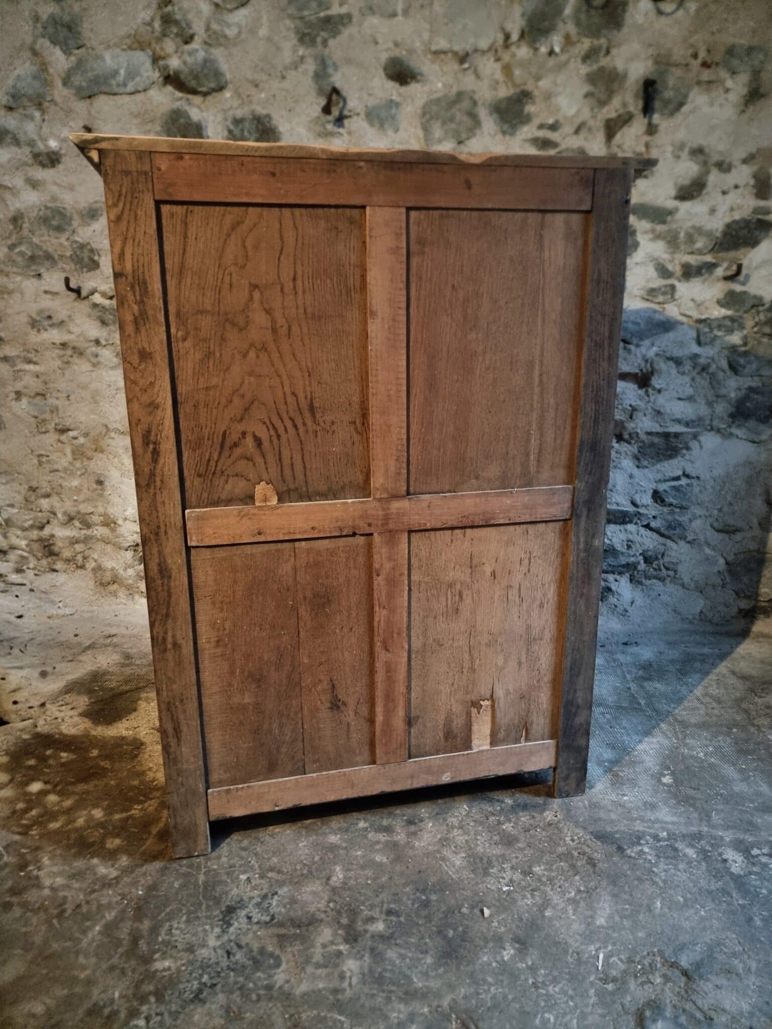 The cabinet is constructed from a combination of solid oak and pine, a common and characteristic choice for French provincial furniture of this period. The design is sober and functional, reflecting its utilitarian origins rather than a specific decorative style.