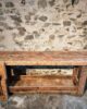 Measuring 49 cm deep × 238 cm wide × 82 cm high, this workbench offers generous proportions, making it ideal as a statement console table, kitchen island, or display piece in a modern or rustic interior.