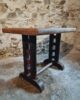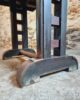 This antique bistro table from the 1920s was crafted in France and features a solid oak top with a beautiful natural grain. Its striking black-painted wooden base with geometric details adds a subtle industrial flair, making it perfect for vintage or eclectic interiors.