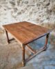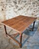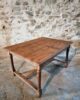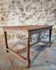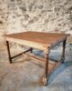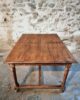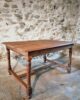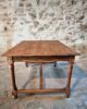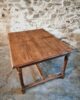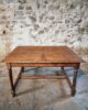The table features a rectangular top with a beautiful natural patina, supported by turned legs connected with cross stretchers for extra stability. Its warm wood tones and sturdy construction highlight the quality of French craftsmanship of the period.