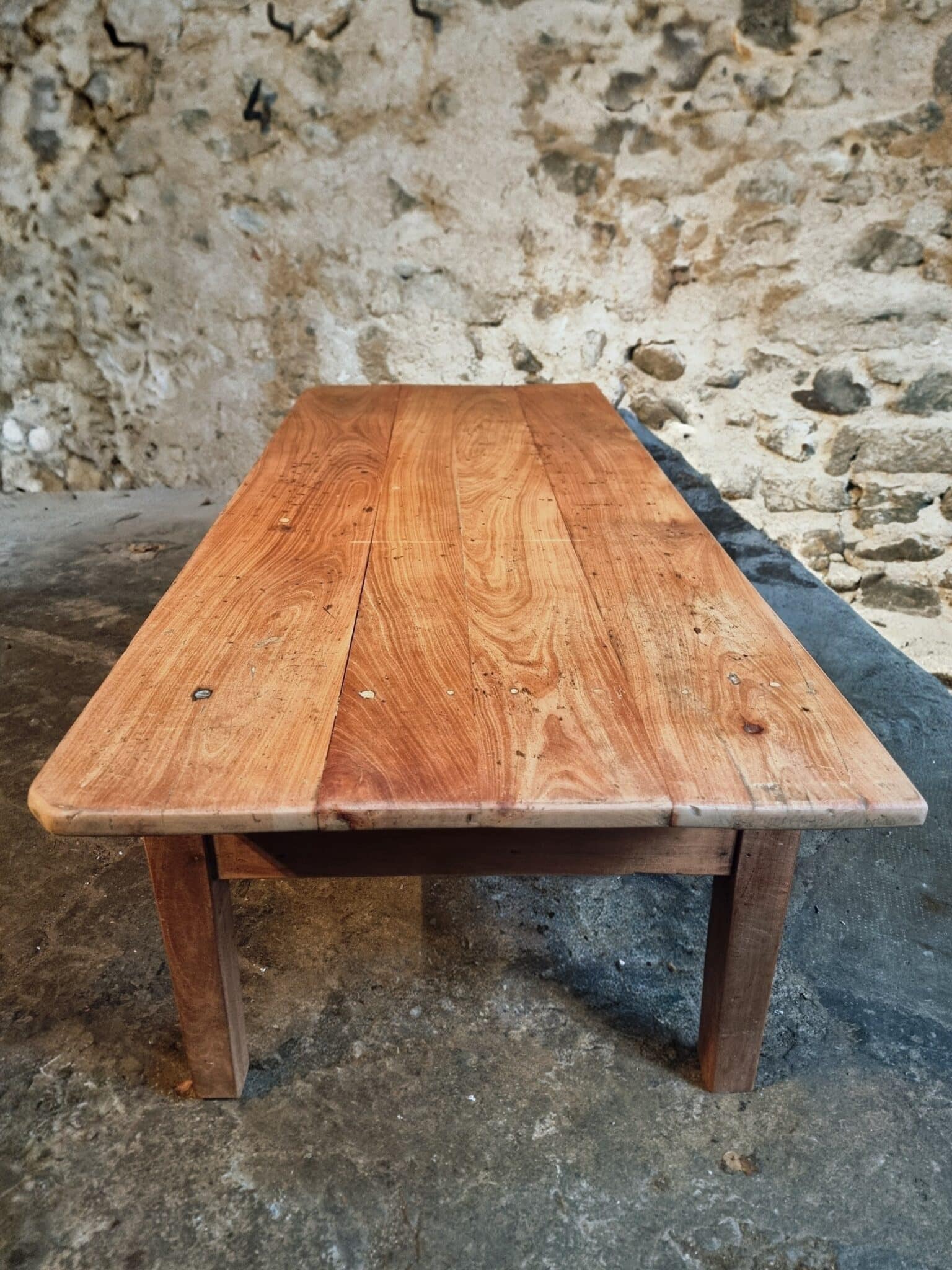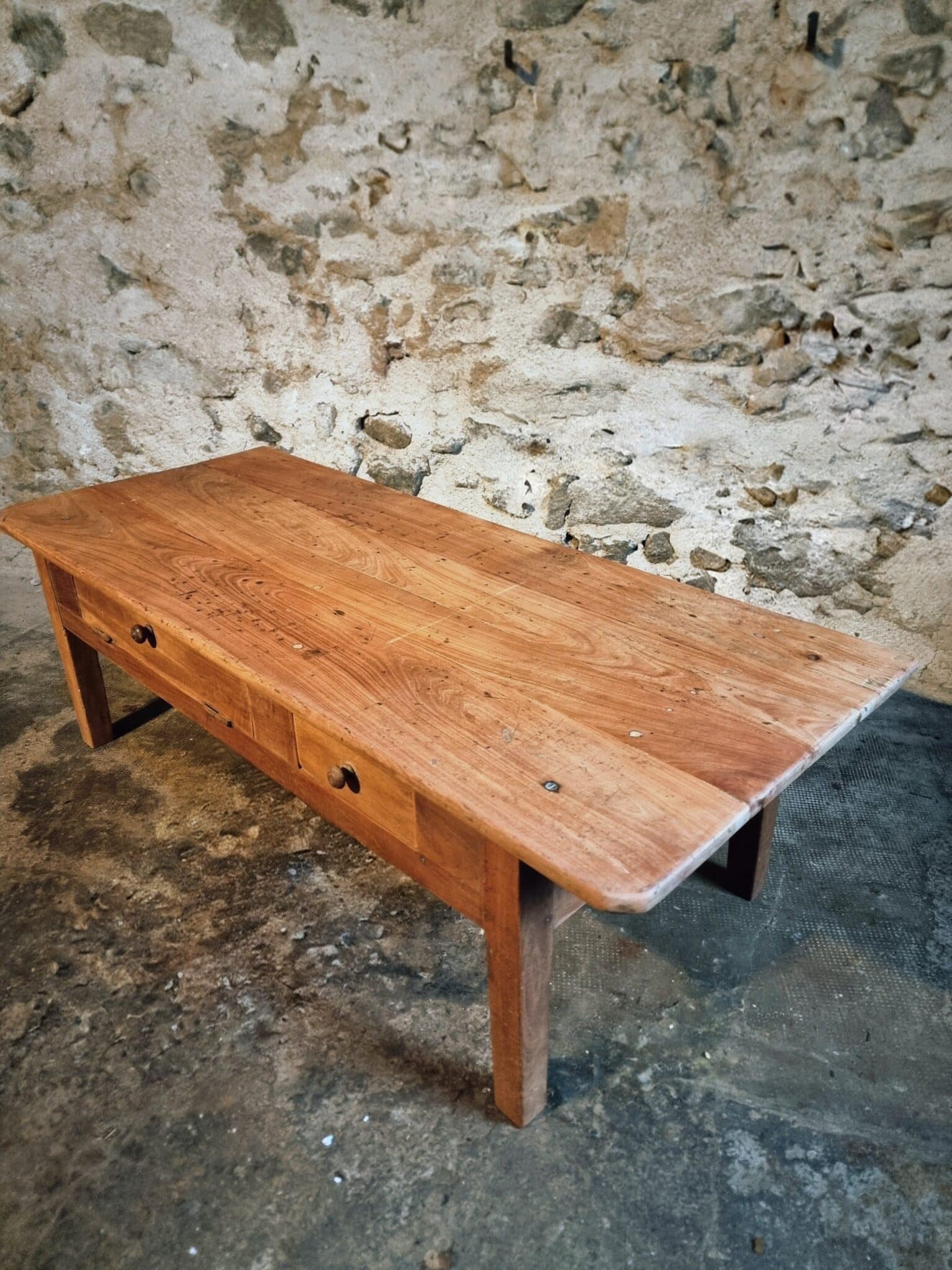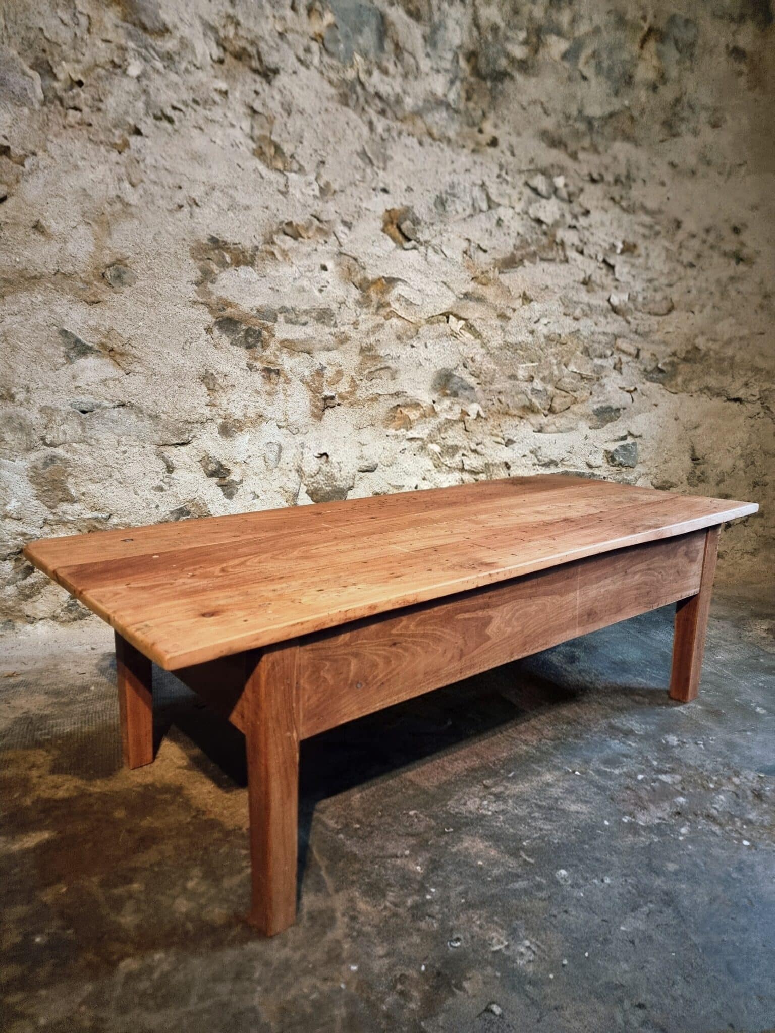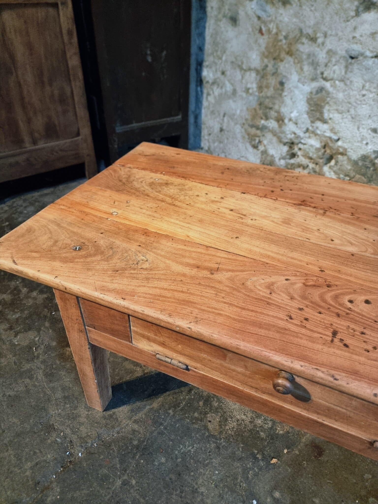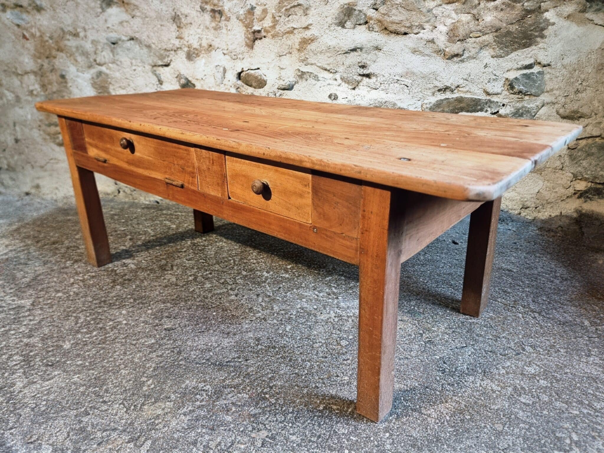 This antique coffee table originates from the Allier region of France and dates from around 1750–1800. Crafted from solid cherrywood, it was originally a farmhouse table and retains all the authentic charm and character of rural 18th-century craftsmanship.