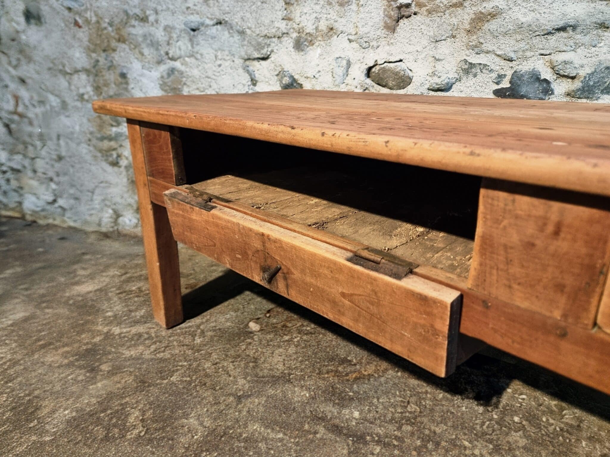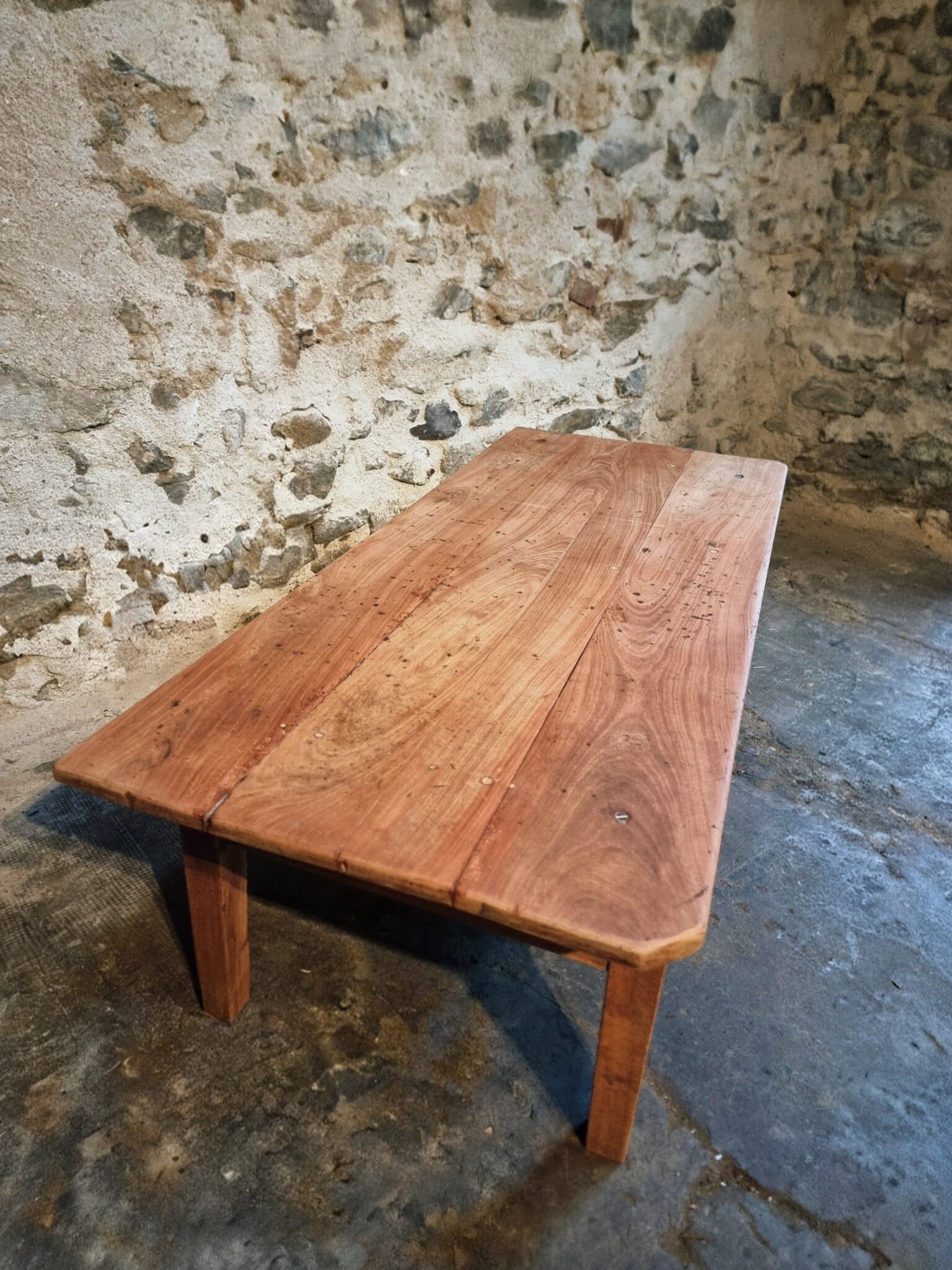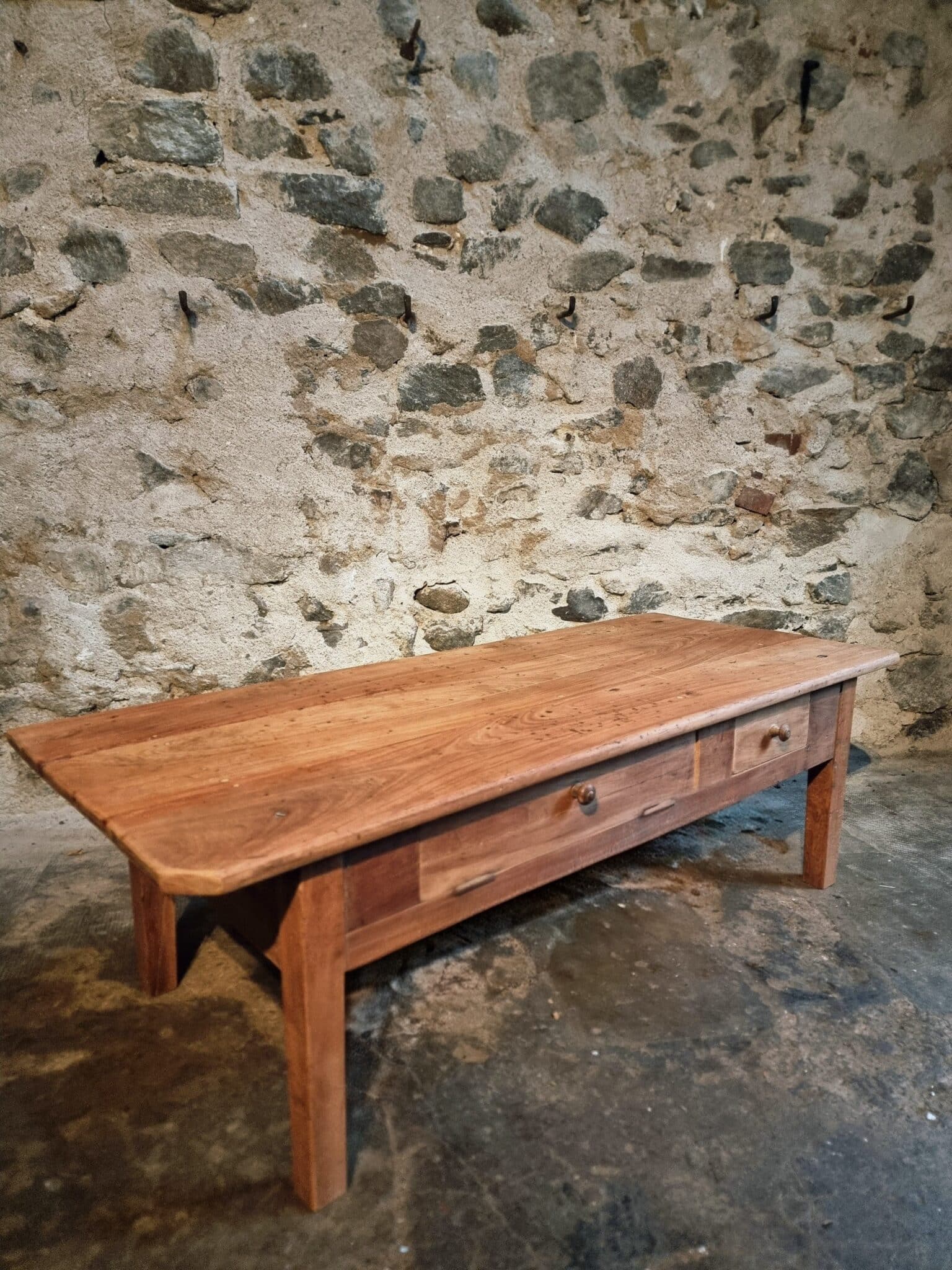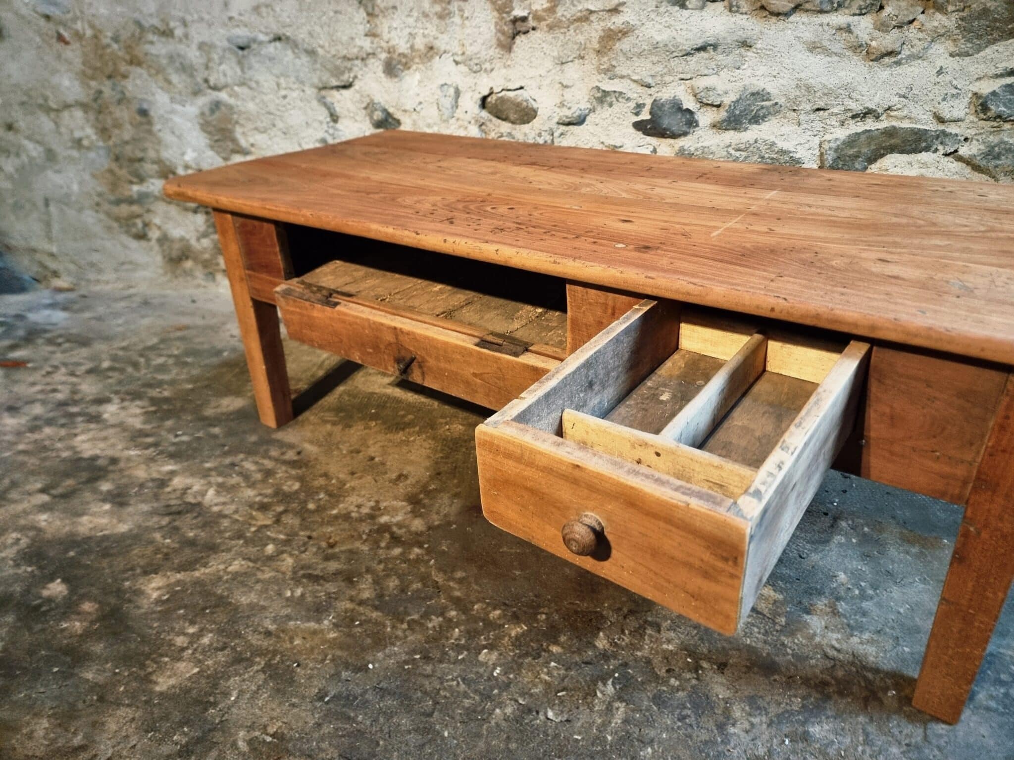 This antique coffee table originates from the Allier region of France and dates from around 1750–1800. Crafted from solid cherrywood, it was originally a farmhouse table and retains all the authentic charm and character of rural 18th-century craftsmanship.