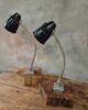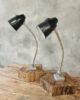The lamps have a flexible metal arm and a metal and bakelite shade.