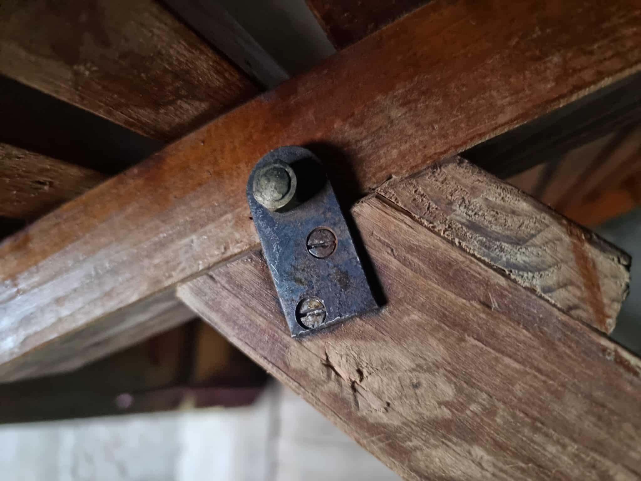 The wood has a warm, natural tone with visible grain and signs of age-related wear, contributing to its authentic vintage character.