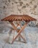 The table folds in two parts, making it easy to store or transport when not in use. Originally intended as a garden or occasional table, it is also well suited for use on a balcony, terrace or as a compact extra table indoors.