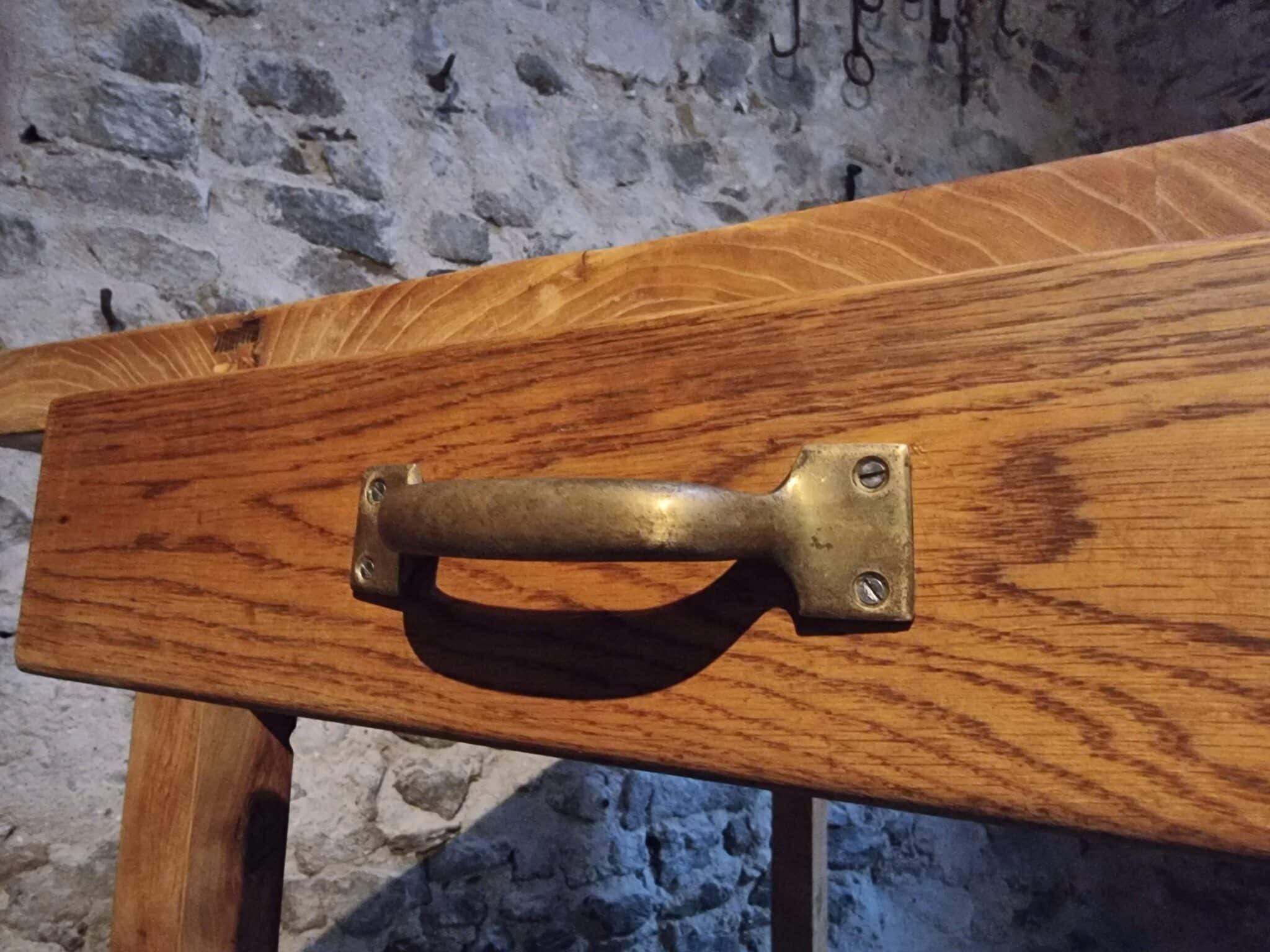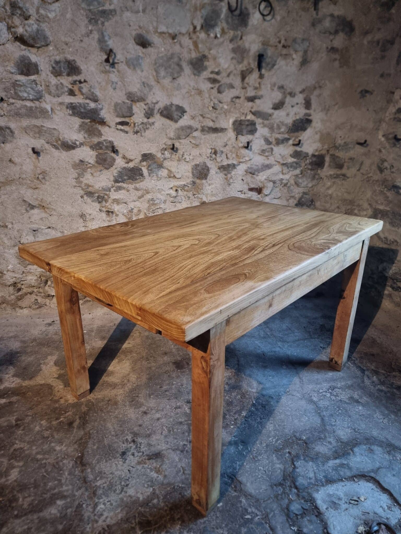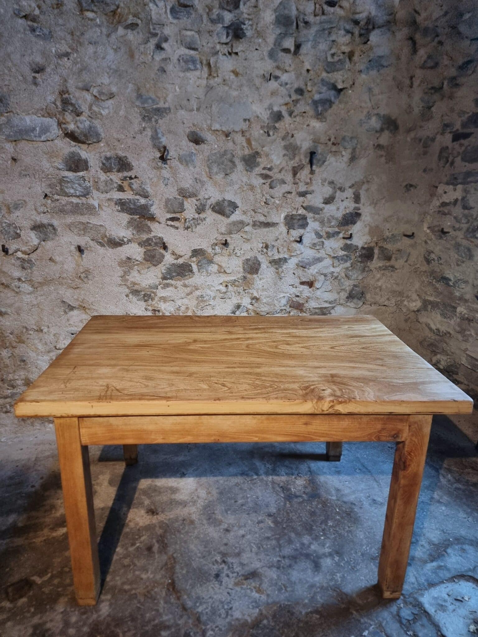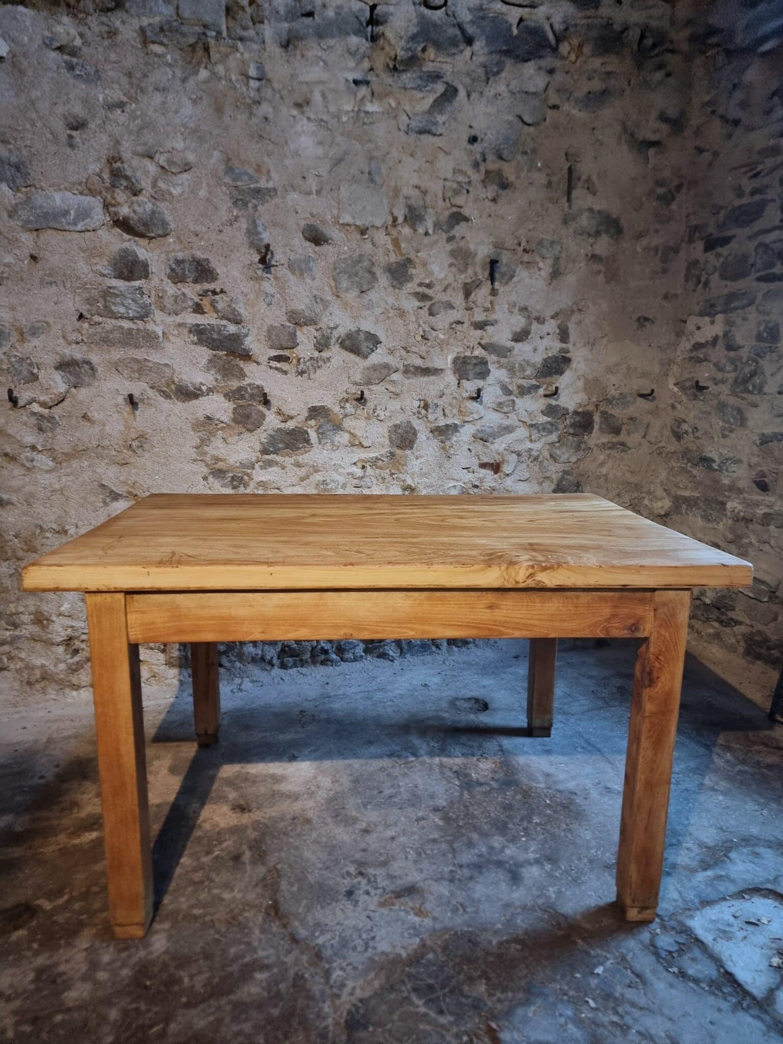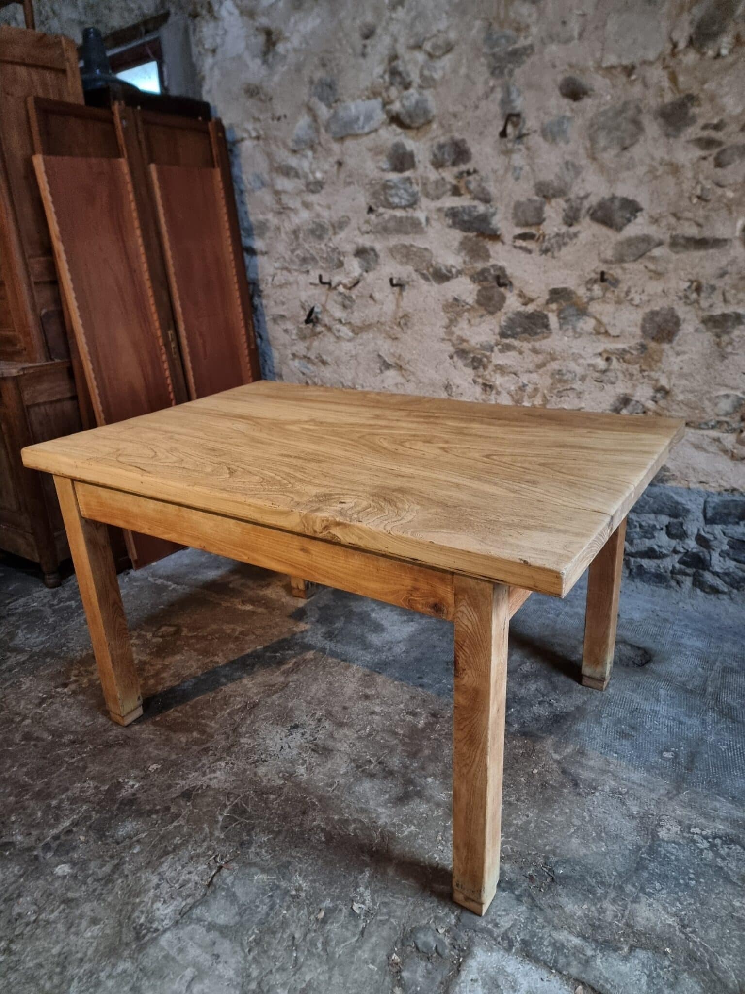 With its substantial construction and clean proportions, this table is well suited for use as a work table, kitchen island, dining table, or studio table. The solid chestnut legs measure 80 x 80 mm, contributing to the table’s sturdy character.