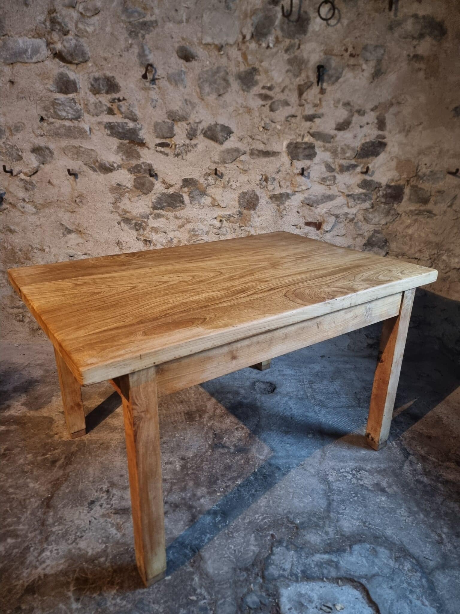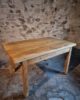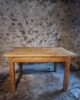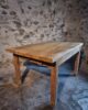 This vintage French baker’s work table dates from the 1960s and is crafted from solid chestnut wood. The table originates from France and reflects the robust, functional design typical of professional workshop and bakery furniture of the mid-20th century.