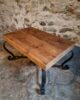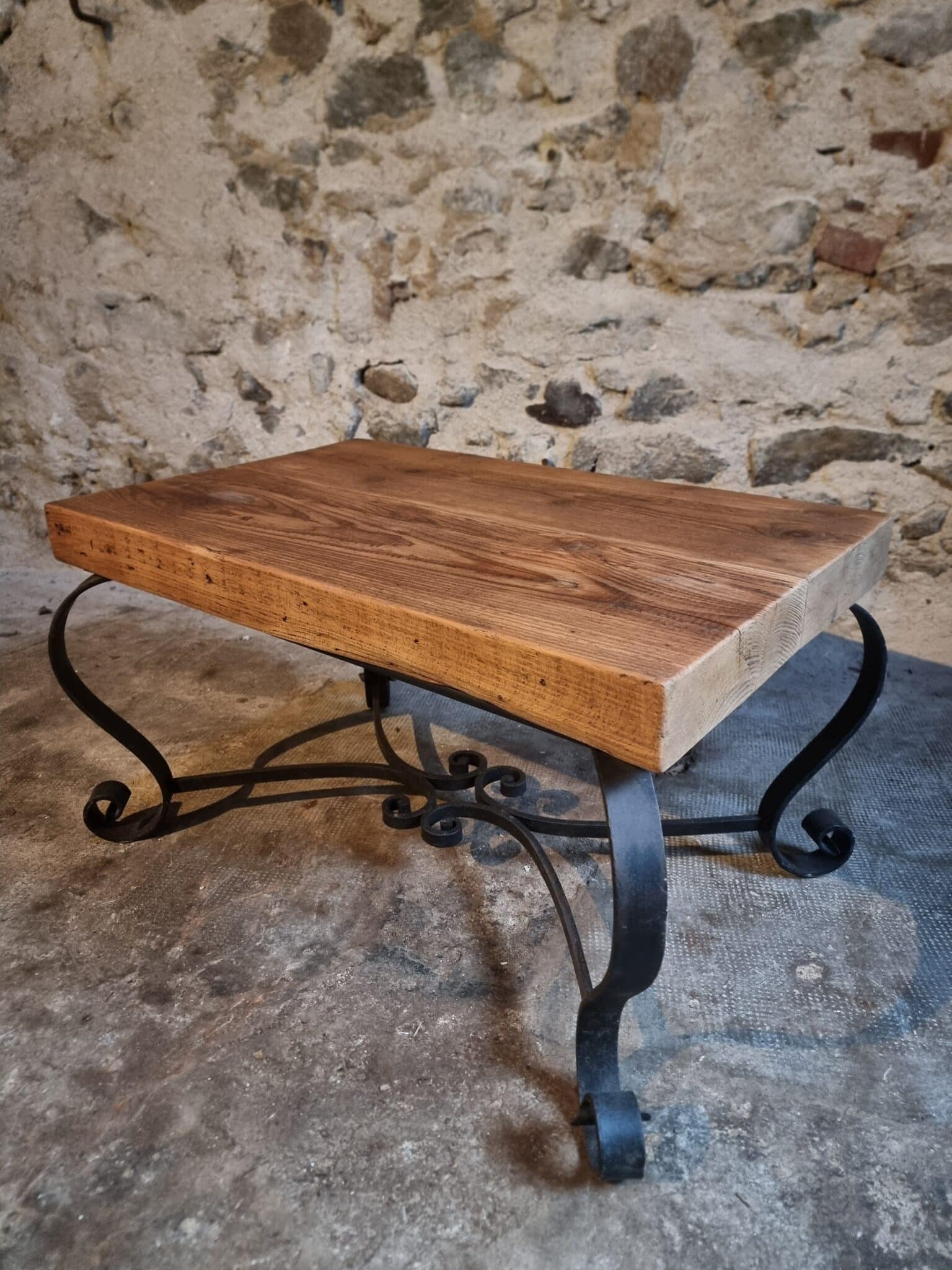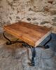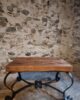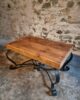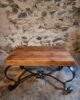 Vintage French Coffee Table 1960s – Rustic Pine Coffee Table with Black Iron Base