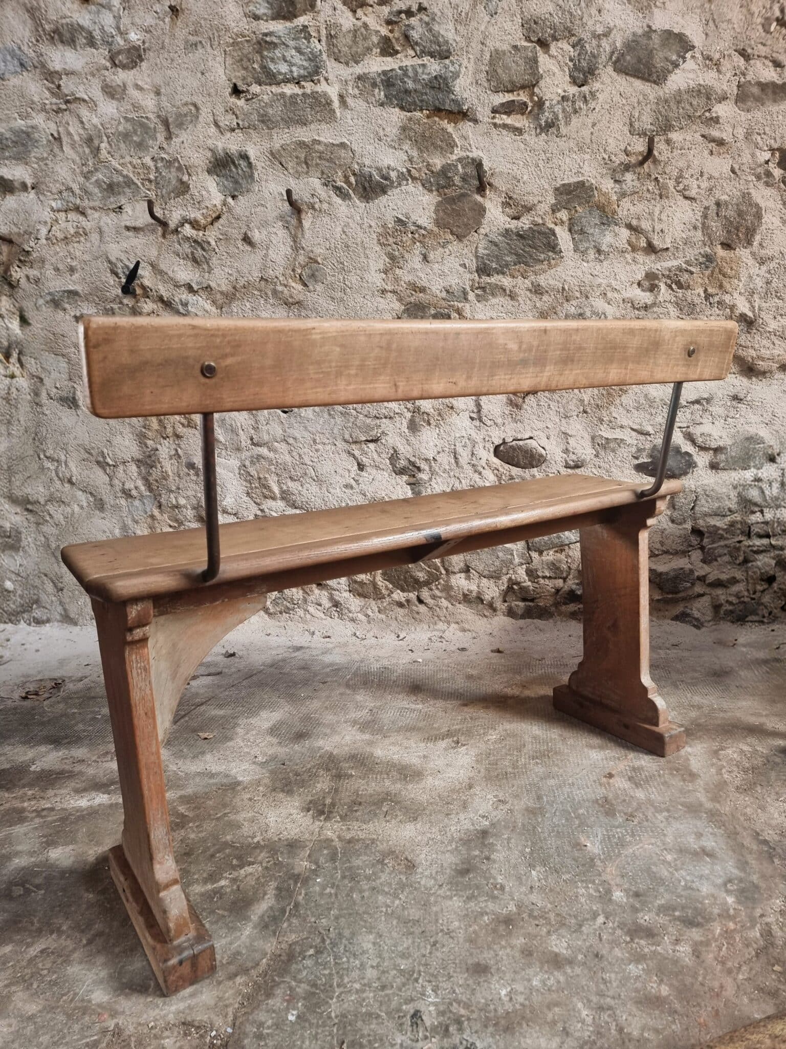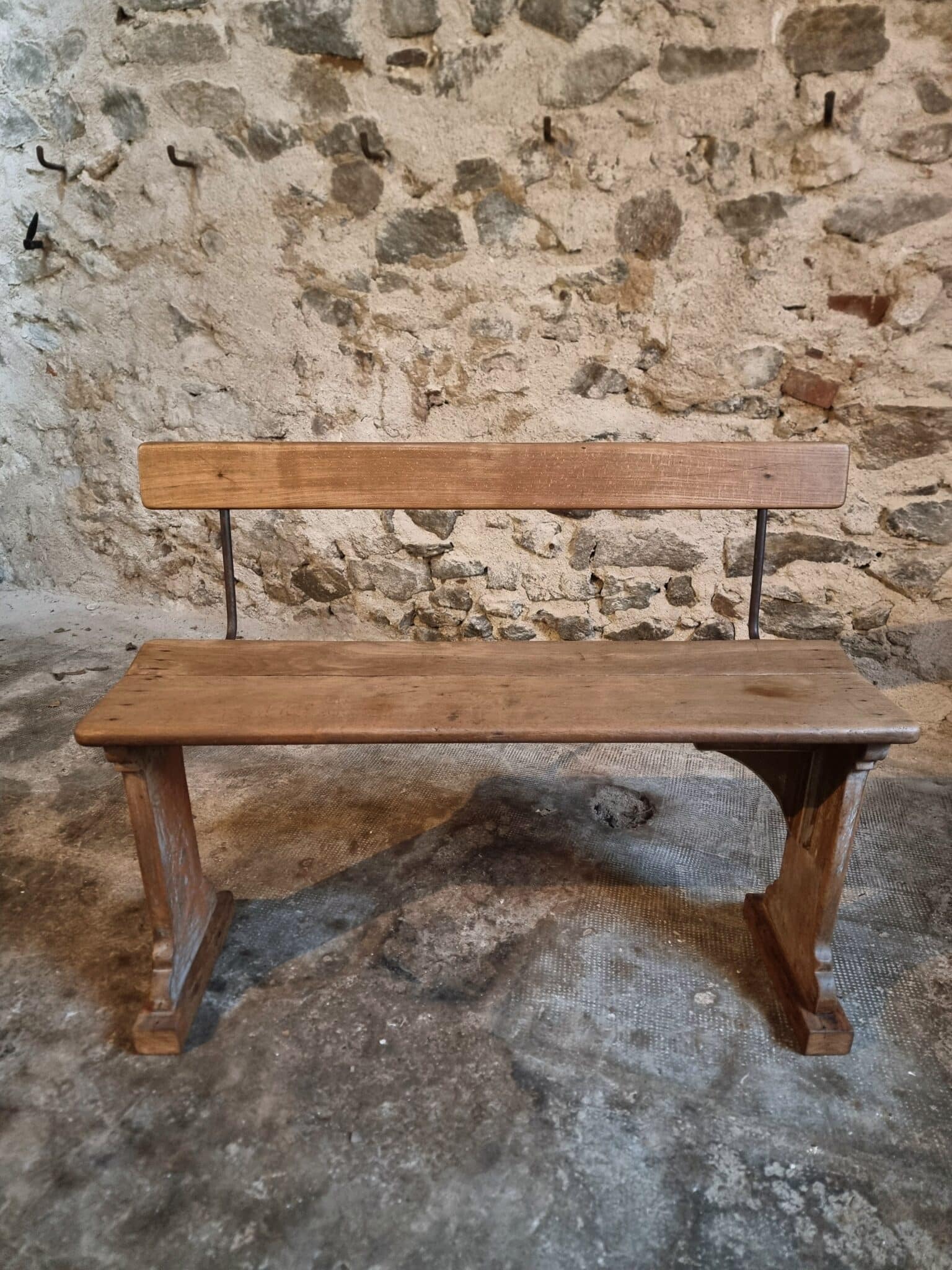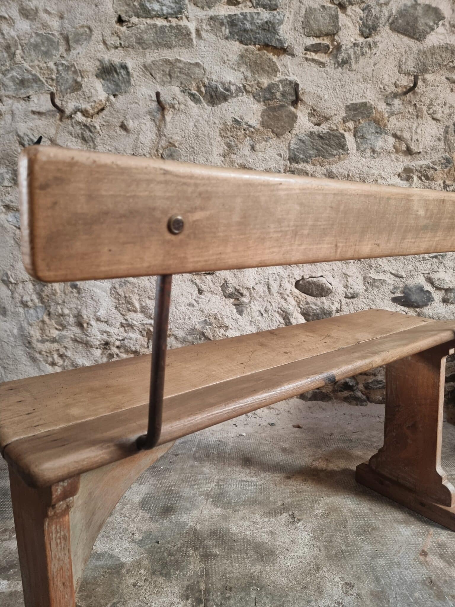 Vintage French Wooden Bench 1920s – Solid Beech Bench with Backrest