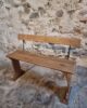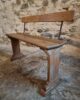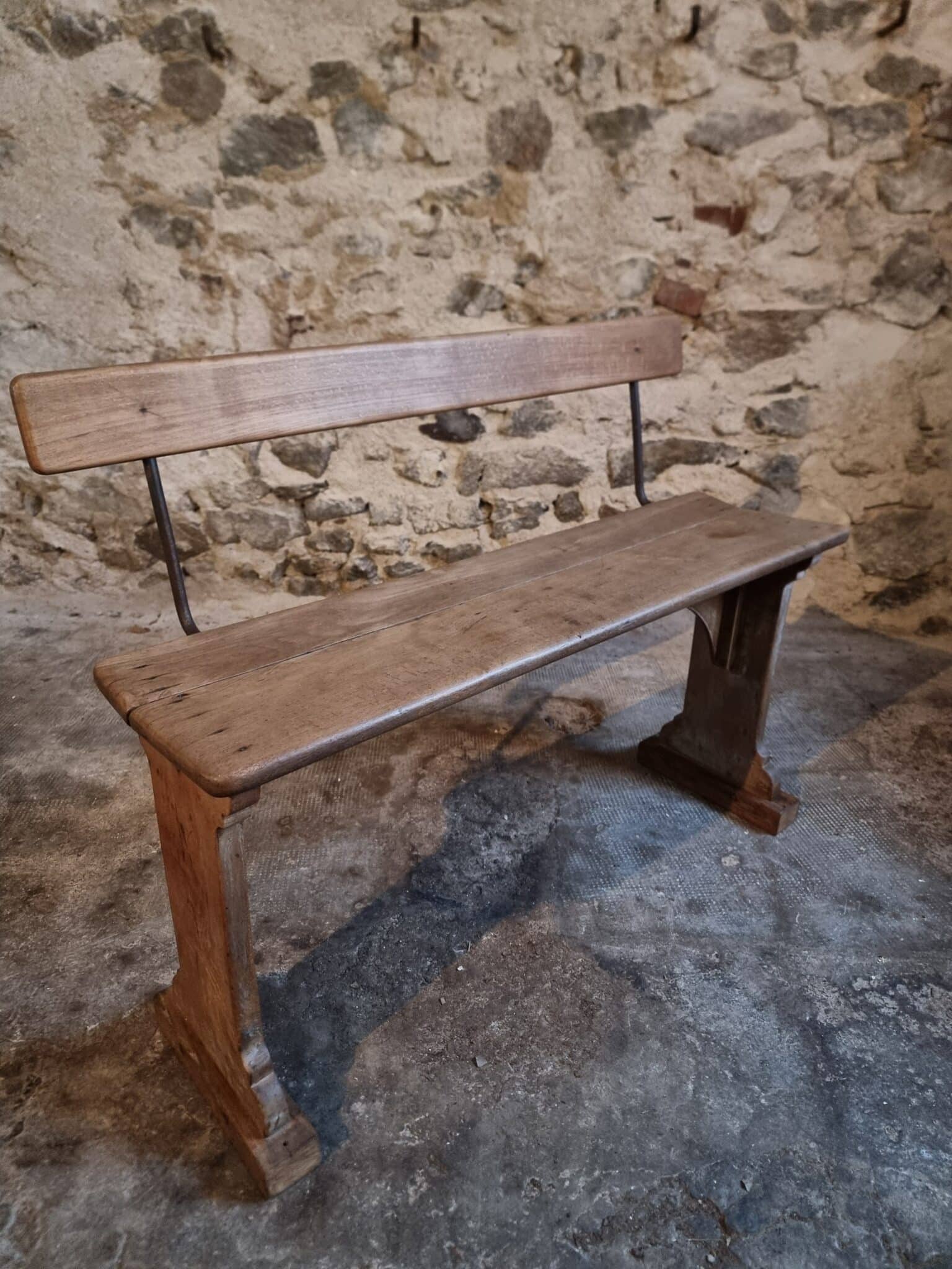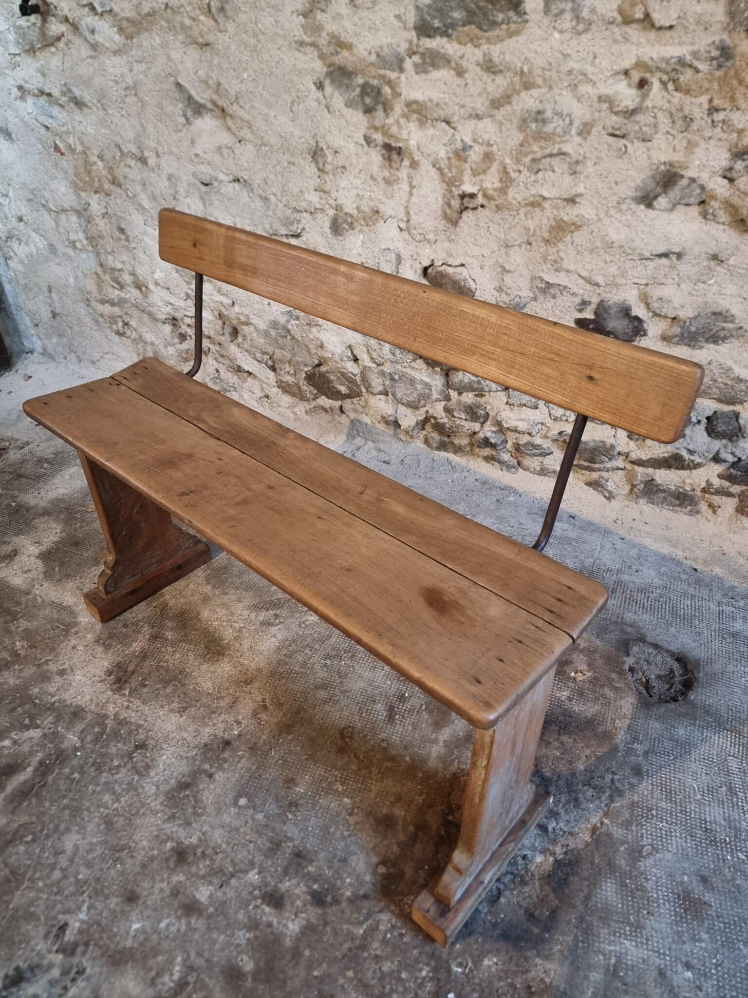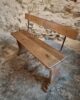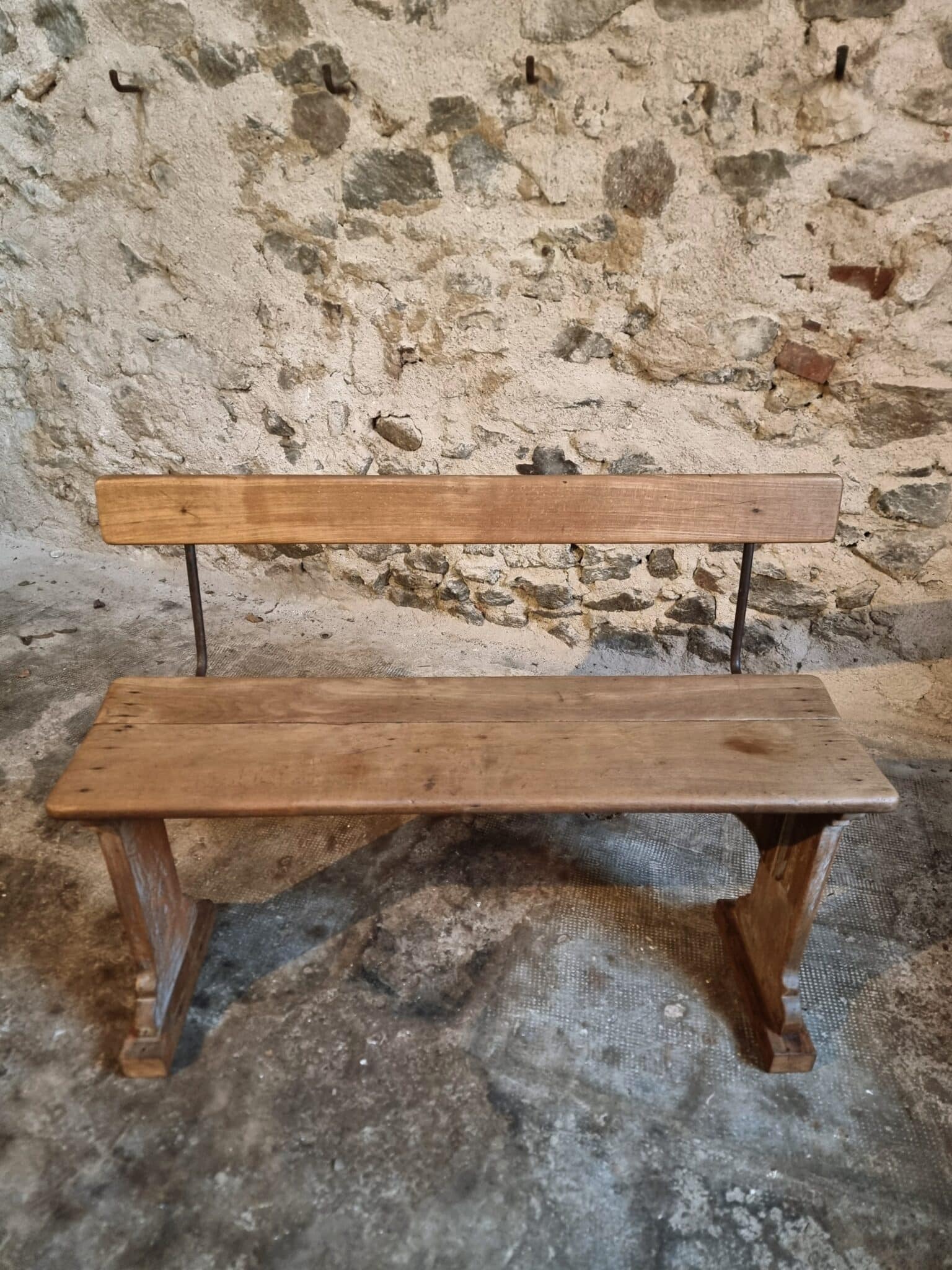 Vintage French Wooden Bench 1920s – Solid Beech Bench with Backrest